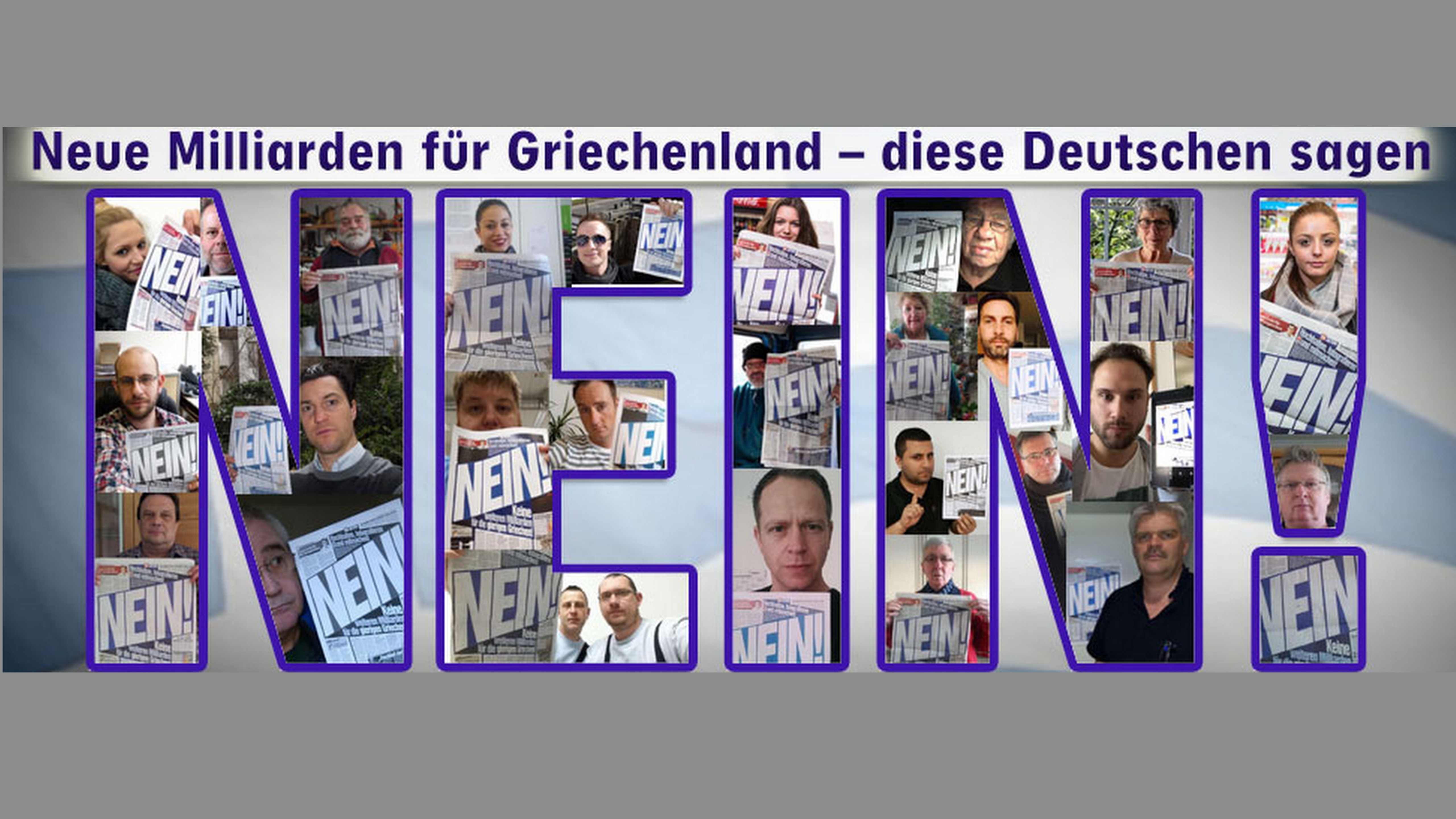 Zároveň Bild vyzval ľudí, aby sa s týmto titulom, na protest proti ďalšej pomoci Grécku, odfotografovali a fotografie poslali do redakcie.