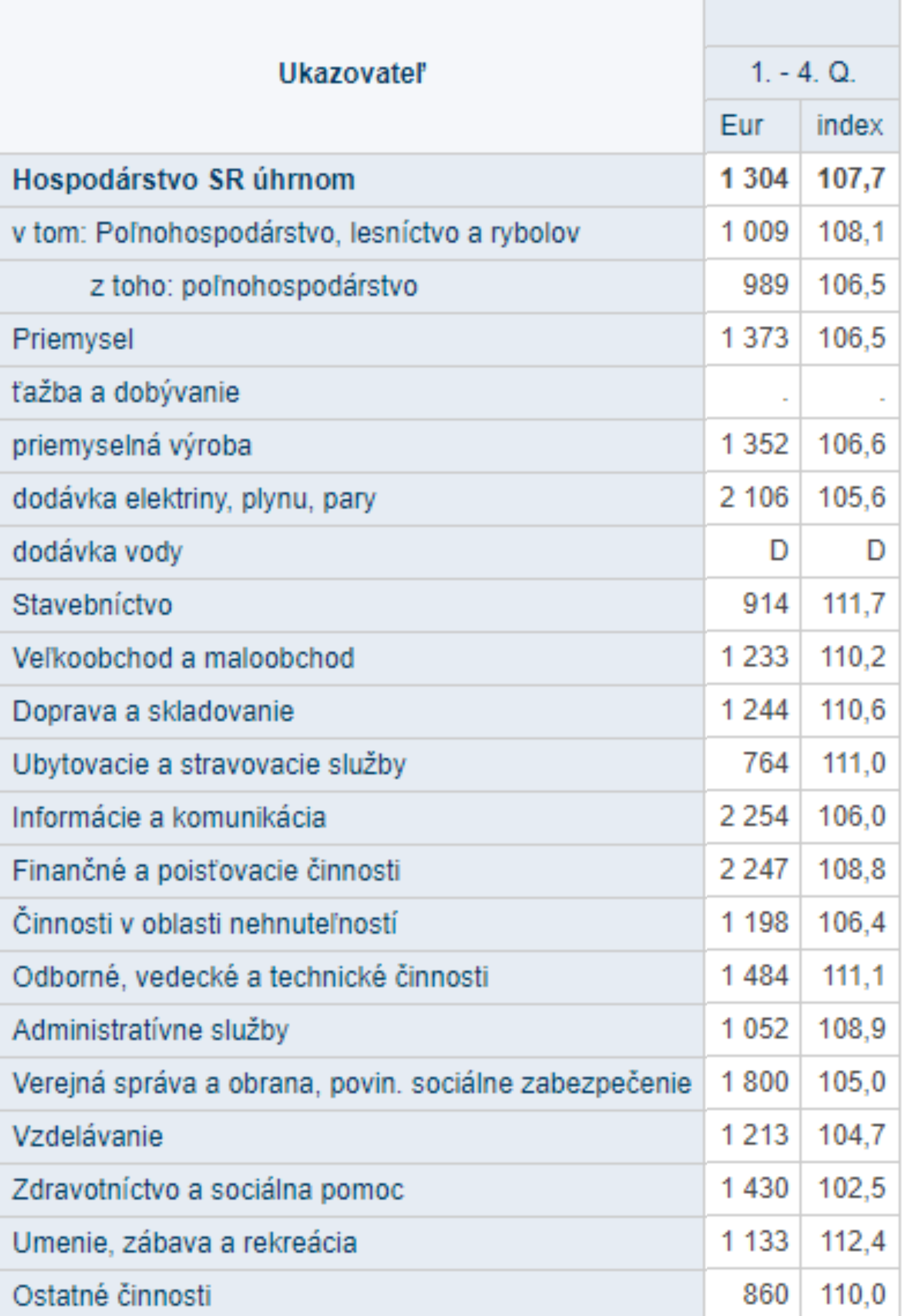"Naopak, len minimálne klesli v oblasti nehnuteľností, v stavebníctve, v ubytovacích a stravovacích službách," pokračoval Chrappa. Tam bol pokles len do 1,5 percenta a v oblasti obchodu 4 percentá. Tento pokles nebol všade rovnomerný, ovplyvnil ho rast miezd. "Mesačná mzda v 4. štvrťroku 2022 dosiahla 6,5 percenta v hodnote 1418 Eur, v hrubom tak zamestnanci dostávali v priemere o 87 eur viac ako na konci roka 2021," povedal Chrappa. Mzdy síce rástli vo všetkých odvetviach, ale s väčšími rozdielmi. Najviac rástli mzdy v stavebníctve, v ubytovacích a stravovacích zariadeniach o viac ako 13 percent, oblasť obchodu o viac ako 10 percent.