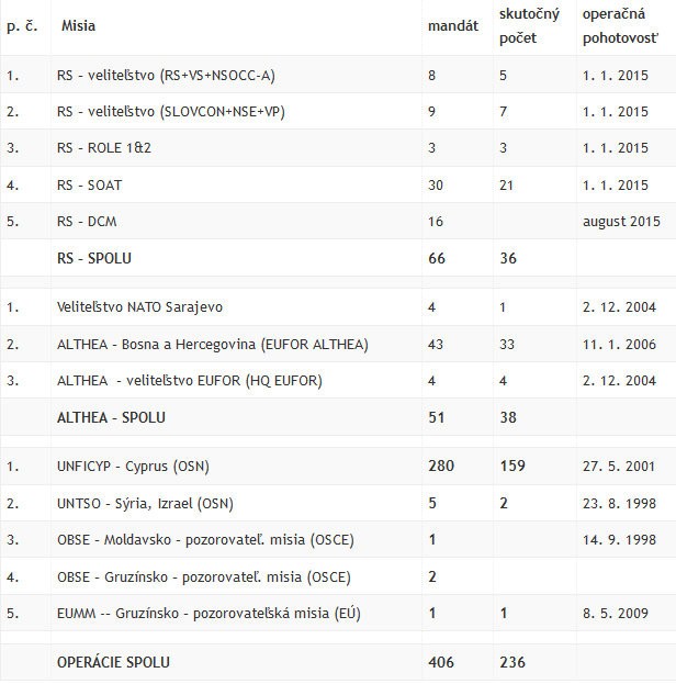 Slovensko v súčasnosti pôsobí v nasledujúcich operáciách MKM a zahraničných misiách: