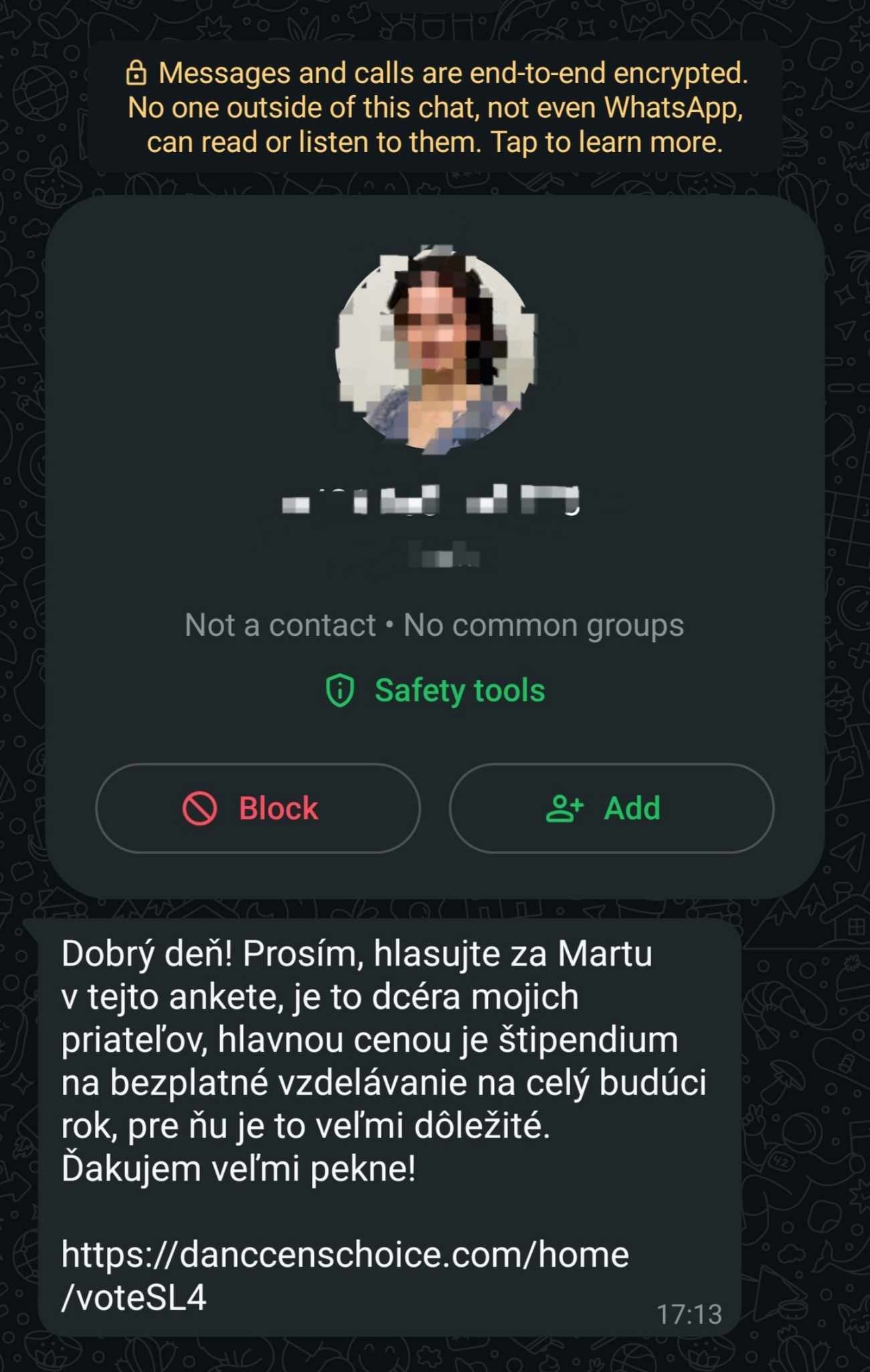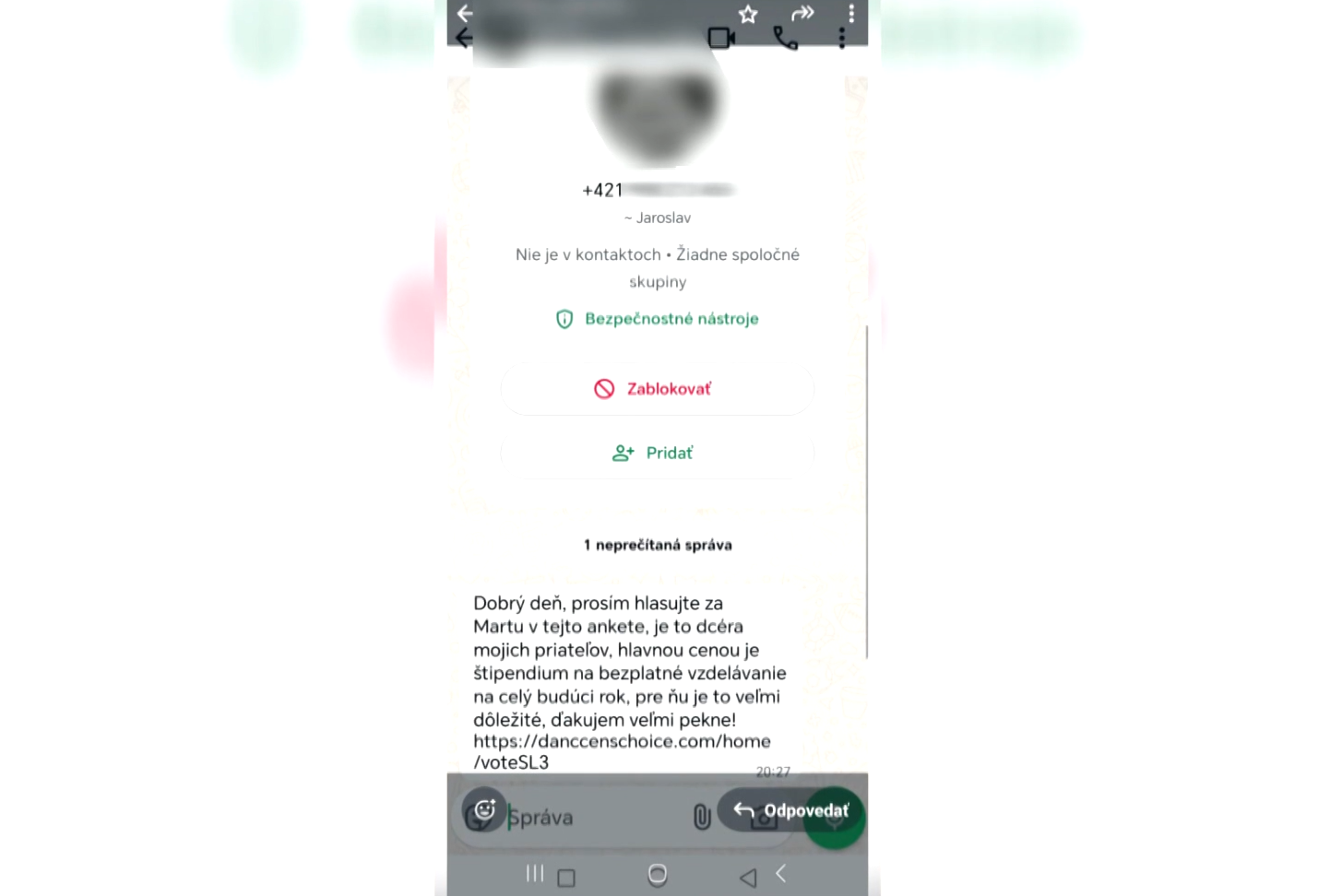 Takáto podvodná správa prišla aj mužovi, s ktorým sme sa rozprávali. Na WhatsAppe mu pípla správa od kamarátovej ženy. Povedal si, že prečo by malému dievčatku nepomohol študovať, tak na link klikol. "Nasledovalo, že odo mňa chcel zdieľané pripojenie, tak som klikol na 'áno'. Zdalo sa mi, že musím zadať šesťmiestne heslo, tak som ho zadal. Pripojenie tým pádom fungovalo, ale hlasovať sa nedalo," vysvetlil poškodený.