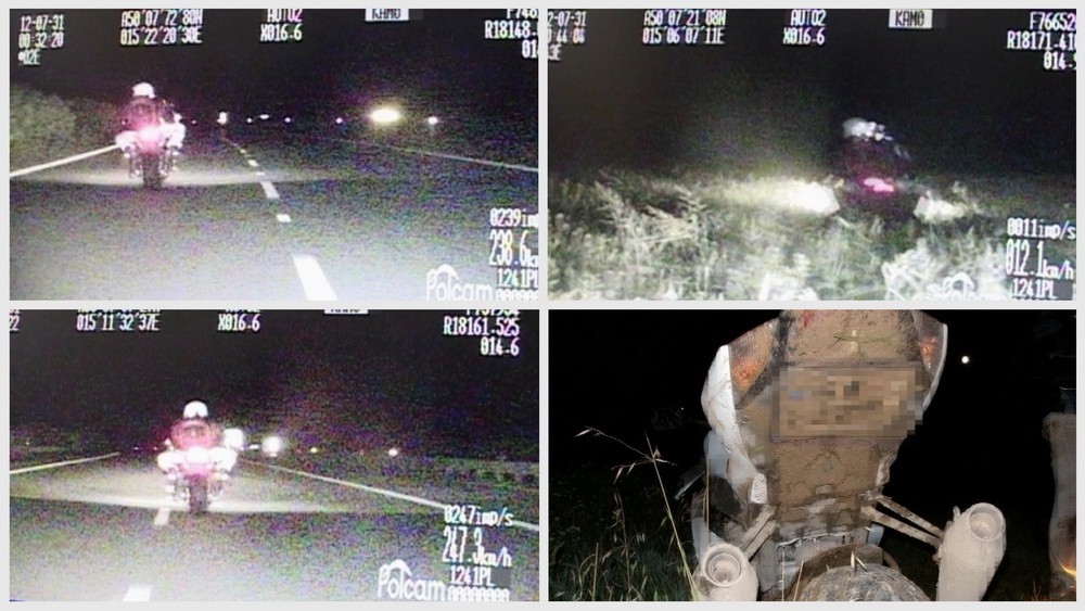 Krátko po pol jednej ráno, keď si diaľniční policajti všimli na D11 motorkára s nečitateľnou štátnou poznávacou značkou. Policajti zapli výstražné svetlá a chystali sa motorkára zastaviť. Vtedy sa mienená kontrola zmenila na šialenú naháňačku.