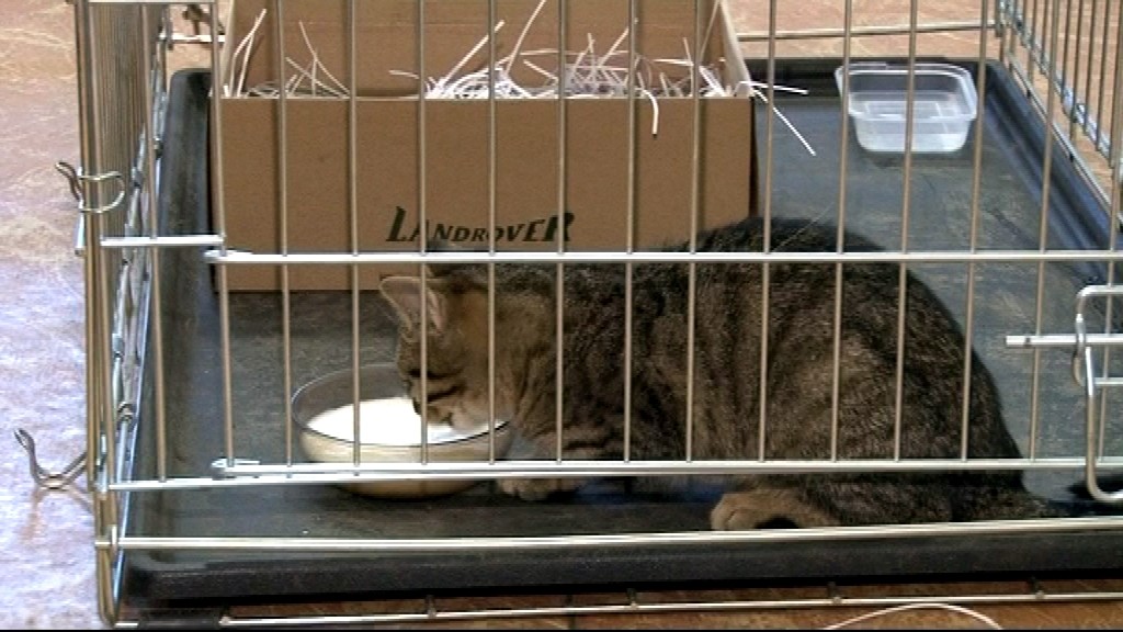A tak mačiatko spalo v klietke, ktorú mu požičali kynológovia, škatuľu od topánok doniesli muži zákona z domu, podstielku malo zo skartovaných papierov a mlieko z chladničky policajného riaditeľa. Na nezvyčajného hosťa v zadržiavačke sa hneď ráno prišli pozrieť takmer všetci policajti, mačiatko potom putovalo v aute mestskej polície na vyšetrenie.