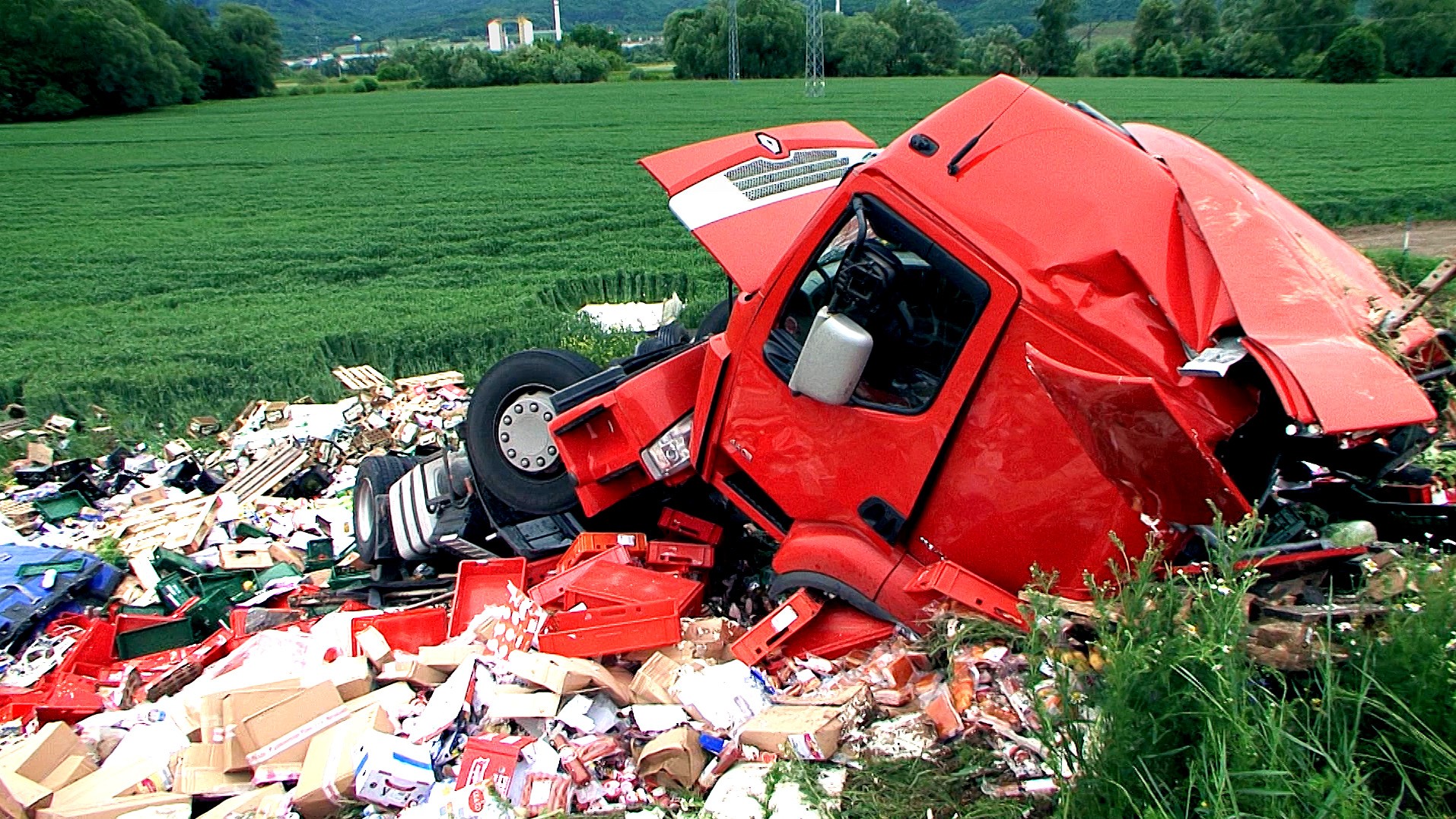 Niekoľko ton potravín skončilo na poli, boli rozhádzané v okruhu niekoľkých metrov.