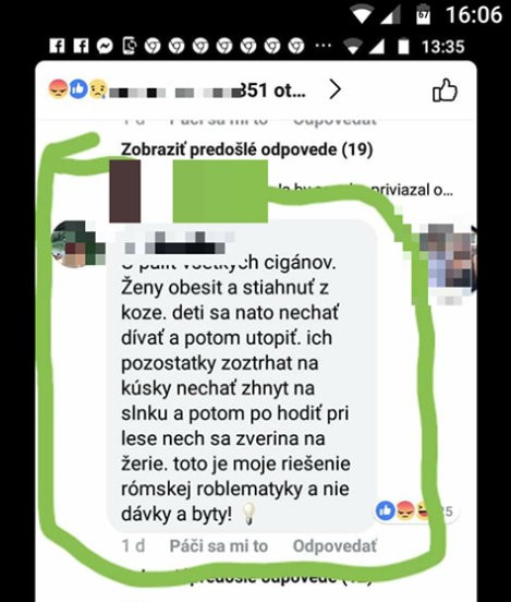 NAKA sa zaoberá nenávistným komentárom na sociálnej sieti. Rómov chce muž stiahnuť z kože