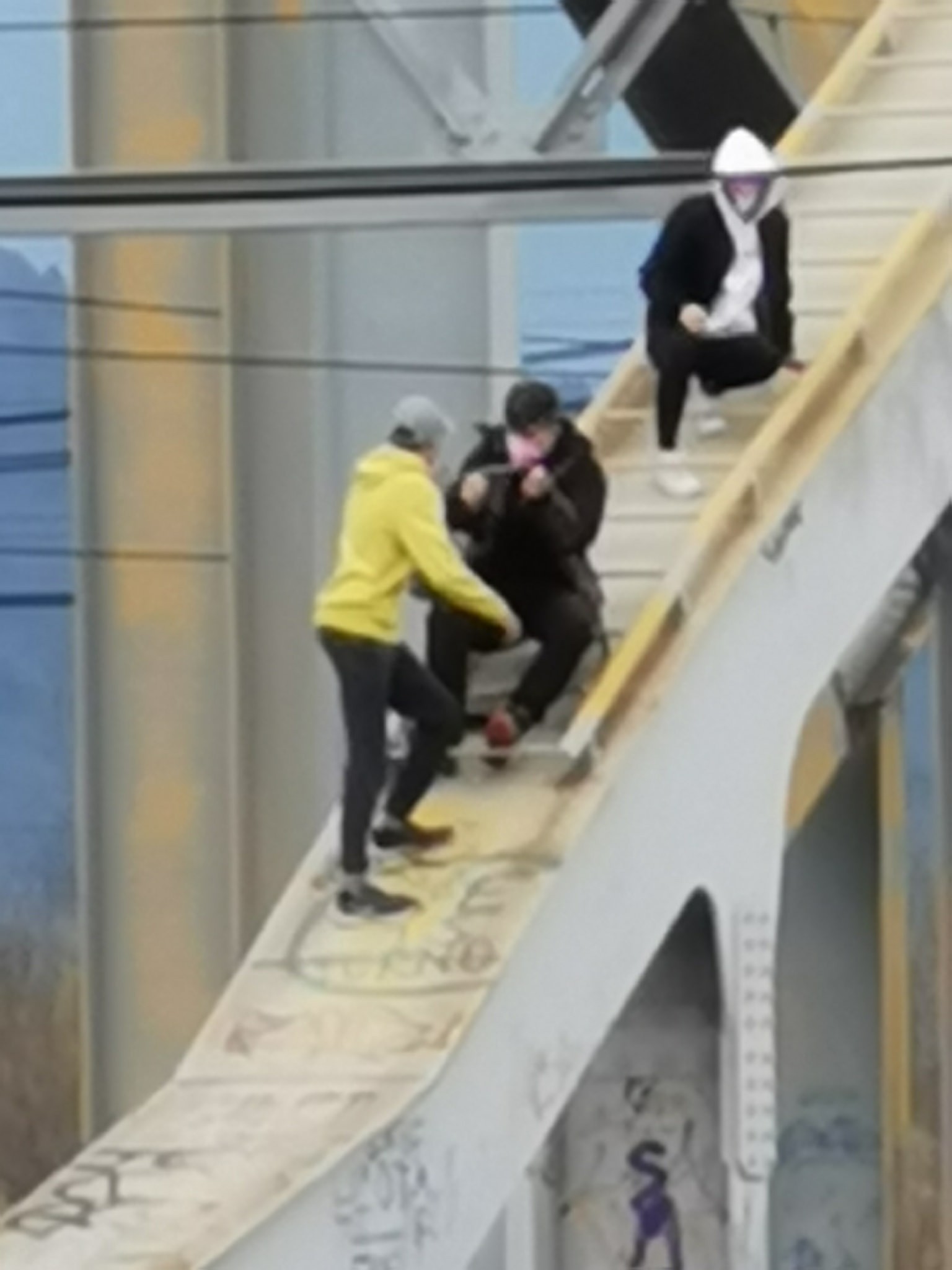 TEPLIČKA NAD VÁHOM, OKRES ŽILINA / Traja mladíci veľmi čudným spôsobom trávili svoj voľný čas a to na železničnom moste neďaleko dediny Teplička nad Váhom. Zrejme im pritom vyhovovalo nariadenie vlády, vďaka ktorému majú zamaskované tváre.