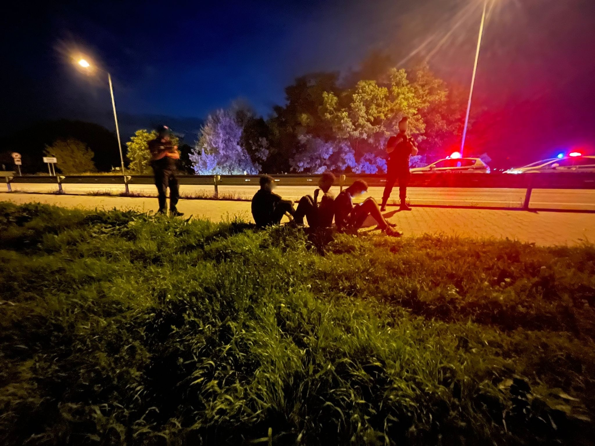 Ďalšie oznámenie dostali policajti od kamionistu, ktorý videl utekať tri osoby z parkoviska firmy Peugeot v Trnave. Hliadky preverili okolie a spozorovali uvedené osoby na zjazde z R1 smerom na Modranku - Empark. Pravdepodobne sa jednalo o občanov Alžírska.