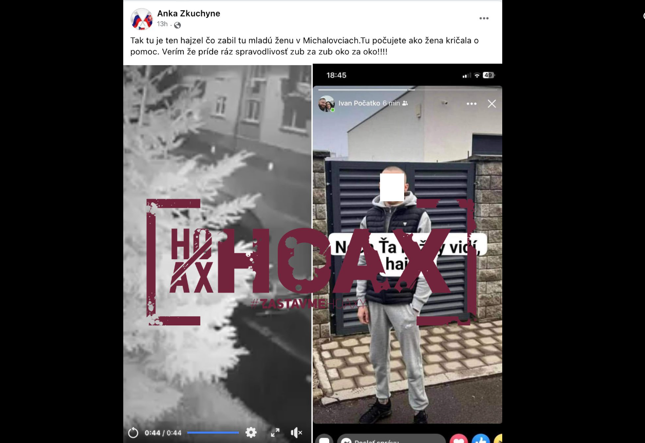 Polícia intenzívne pátra po mužovi, ktorý mal v ranných hodinách dobodať ženu priamo na jednej z ulíc v širšom centre Michaloviec. Internetom sa šíri údajná fotka páchateľa. Polícia toto tvrdenie vyvrátila a označila ju za hoax: "Profil pod názvom "Anka Zkuchyne" zverejnil neupravenú fotografiu mladého muža (úpravu sme spravili až my), o ktorom tvrdí, že má na svedomí novoročnú vraždu v Michalovciach. Rovnaké tvrdenie sa nachádza v rámci účtu "Ivan Počatko". Podľa polície táto dezinformácia zároveň zverejnenú osobu vystavuje nebezpečenstvu v podobe fyzického násilia.