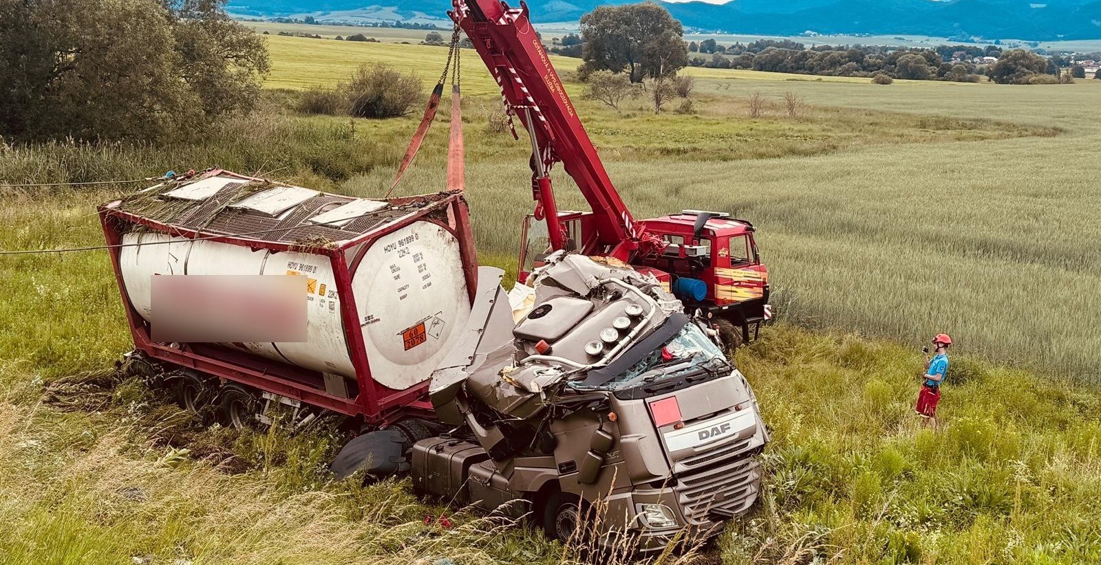 "K prečerpaniu na mieste nemohlo dojsť lebo kryt bol obrátený hore dnom, museli sme dávať pozor aby nedošlo k iskre," informoval Peter Slobodník z odťahovej služby. K miestu nehody nikto okrem zasahujúcich zložiek nesmel. Cisternu najskôr opatrne prevrátili na kolesá.