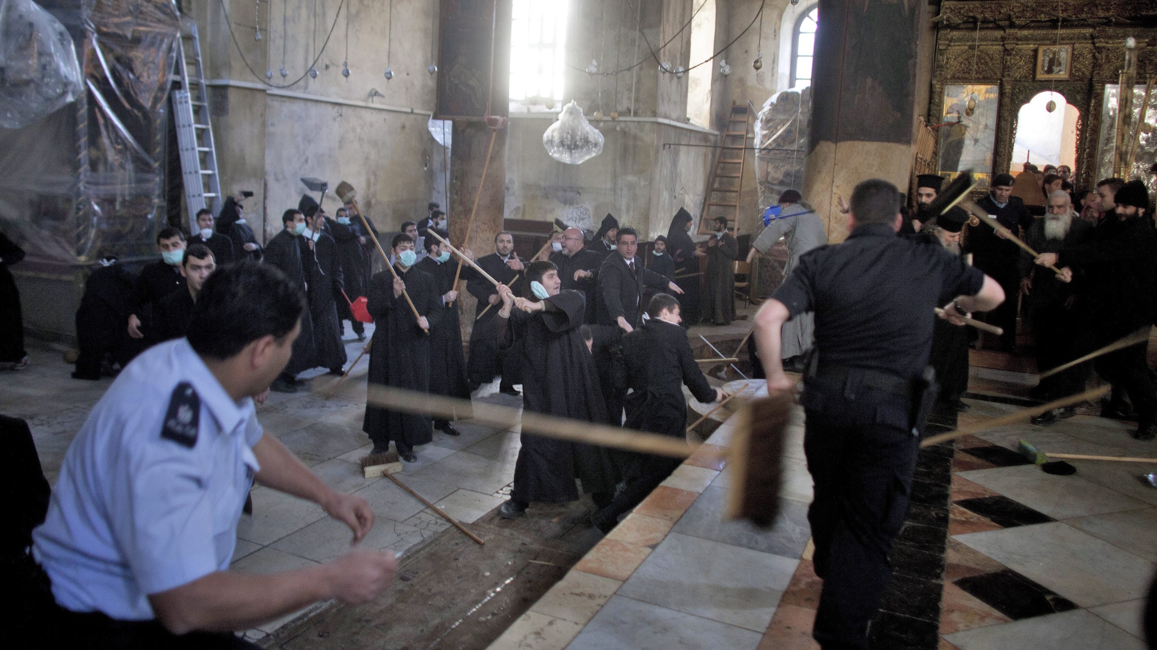 Má to byť najposvätnejšie miesto kresťanstva, zmenilo sa však na ring. Bazilika Narodenie Pána v Betleheme sa zmenila na bojisko. Za všetko môže upratovanie. Stovka kňazov sa nevedela zhodnúť na tom, kto, akú časť kostola uprace. Ako zbrane im poslúžili metly.