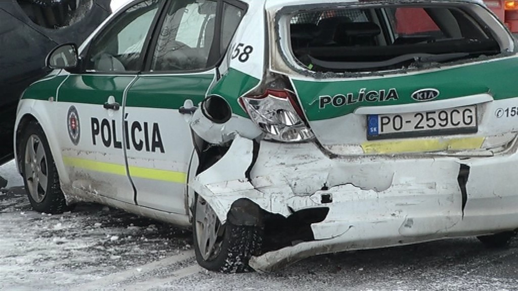 Dostalo šmyk a vpálilo do rovno do policajného auta, v ktorom sedel muž zákona. Košičan zjavne nešiel pomaly a náraz bol taký silný, že policajné auto zostalo nepojazdné.