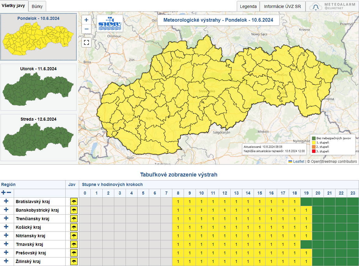 BRATISLAVA / V pondelok treba počas dňa na celom Slovensku počítať s búrkami. Slovenský hydrometeorologický ústav (SHMÚ) vydal v tejto súvislosti výstrahy prvého stupňa.