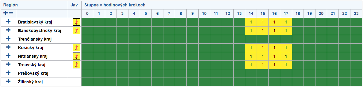 Teplota v noci bude klesať na 17-23°C, v dolinách a kotlinách môže dosiahnuť aj 15°C. Po horúcich, tropických nocách nás čakajú mimoriadne horúce a veľmi dusné dni s teplotami medzi 30 až 36°C. Tieto hodnoty sú nezvyčajne vysoké pre naše územie, ale v posledných rokoch sa u nás objavujú častejšie.