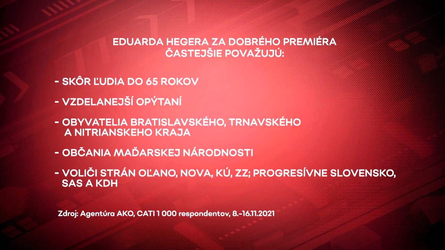 Eduarda Hegera za dobrého premiéra častejšie považujú skôr ľudia do 65 rokov s vyšším vzdelaním. Obyvatelia Bratislavského, Trnavského a Nitrianskeho kraja.