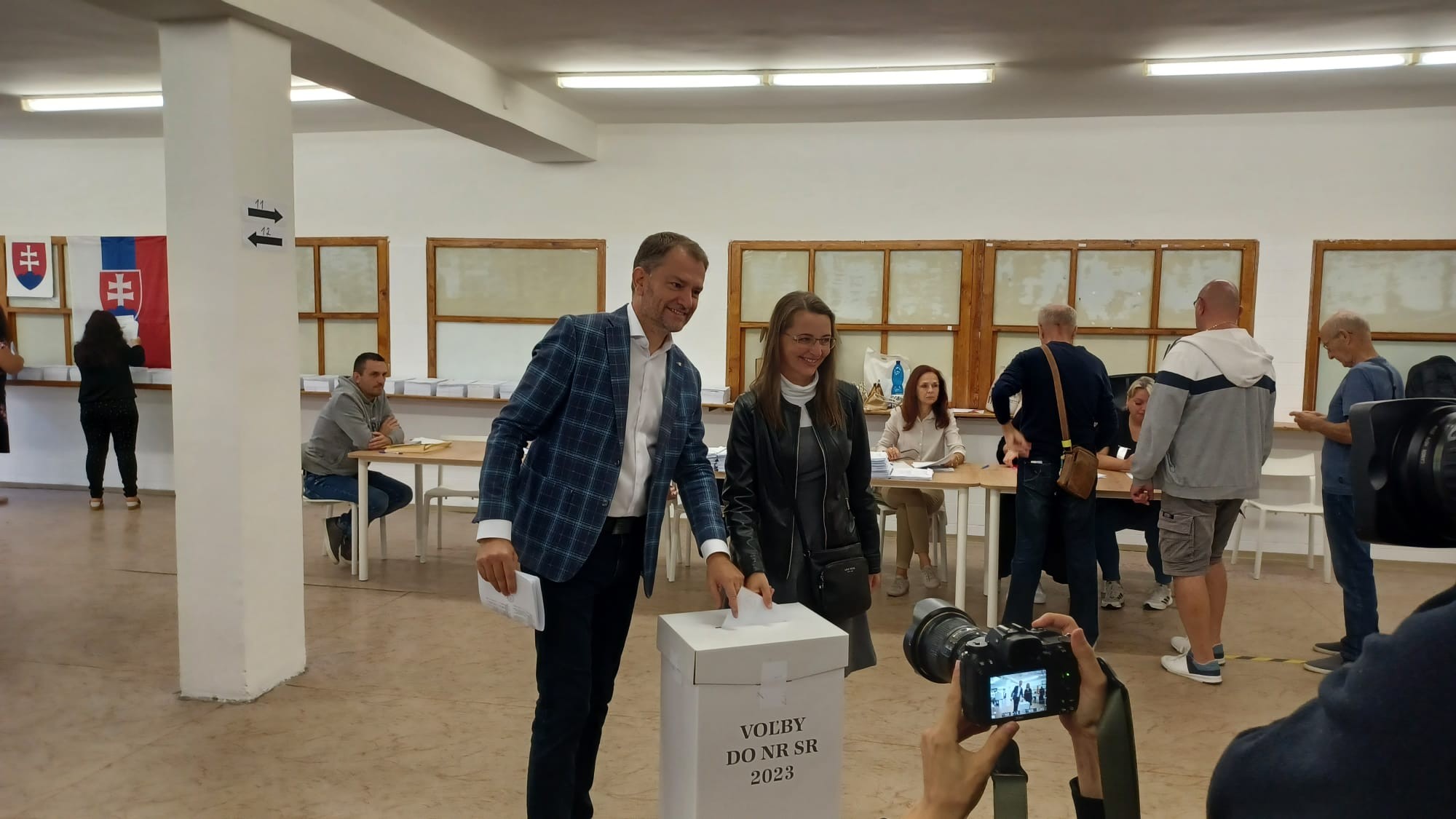 Predseda koalície OĽANO a priatelia už pristúpil k volebnej urne. Odvoliť prišiel so svojou manželkou Paulínou.