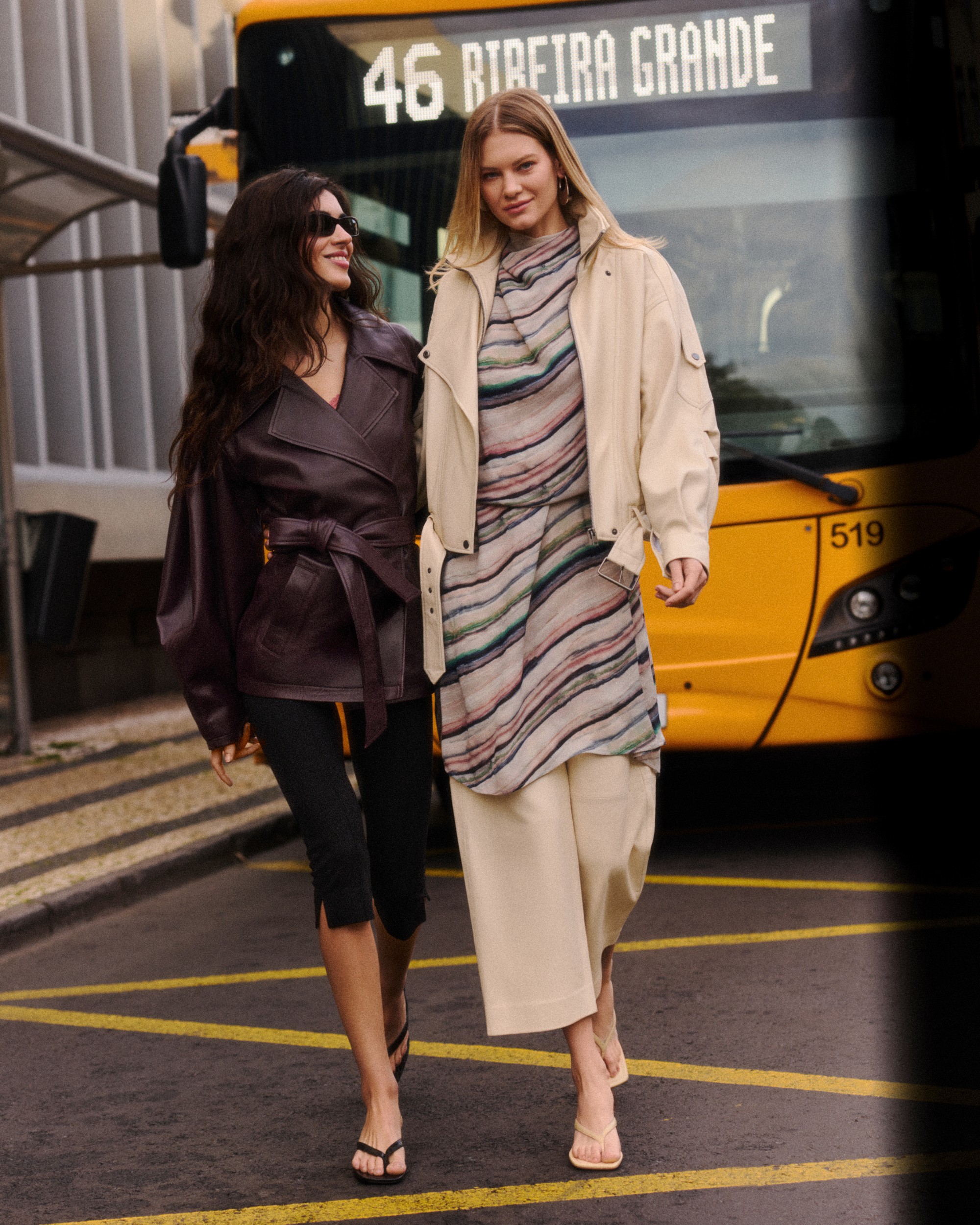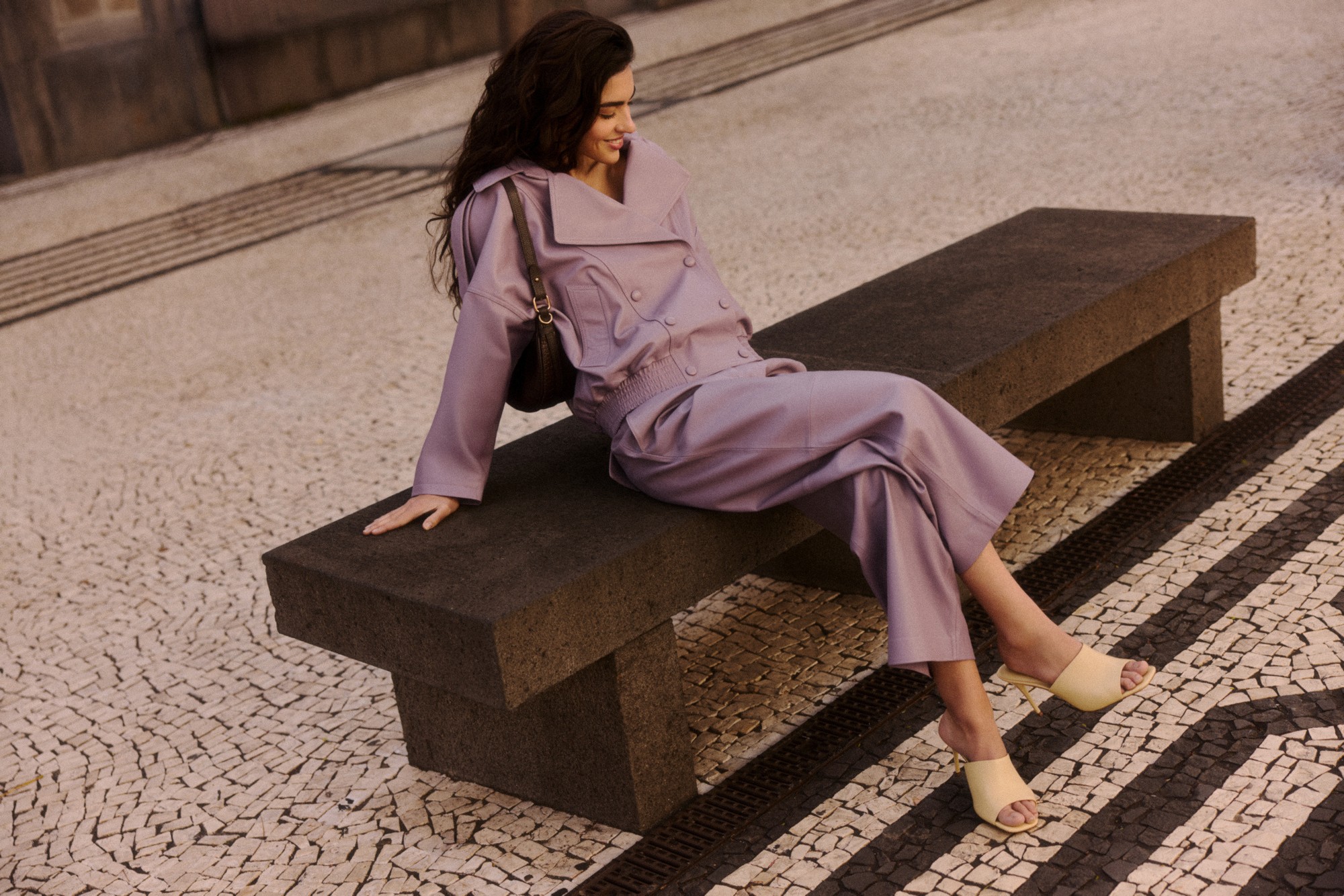;feature=youtu.beDruhý kód stavia na architektonických formách, výrazných proporciách a geometrických strihoch. Trenčkoty, saká, nohavice aj šaty z tejto línie pôsobia takmer sochársky vďaka premysleným líniám, dekoratívnemu prešívaniu a vyšívaným detailom. Monumentálne siluety podčiarkuje znížený pás, rozšírené ramená aj midi dĺžky sukní. Skrátené nohavice odhaľujú členky a nechávajú vyniknúť sandálom na podpätku aj mule topánkam z farebnej palety kolekcie. Nové semišové lodičky, sandále a mule topánky pre sezónu SS26 prinášajú sviežu interpretáciu jarnej ľahkosti, v ktorej sa prepája jemná štruktúra, nenápadná zmyselnosť a sofistikovaný matný povrch.