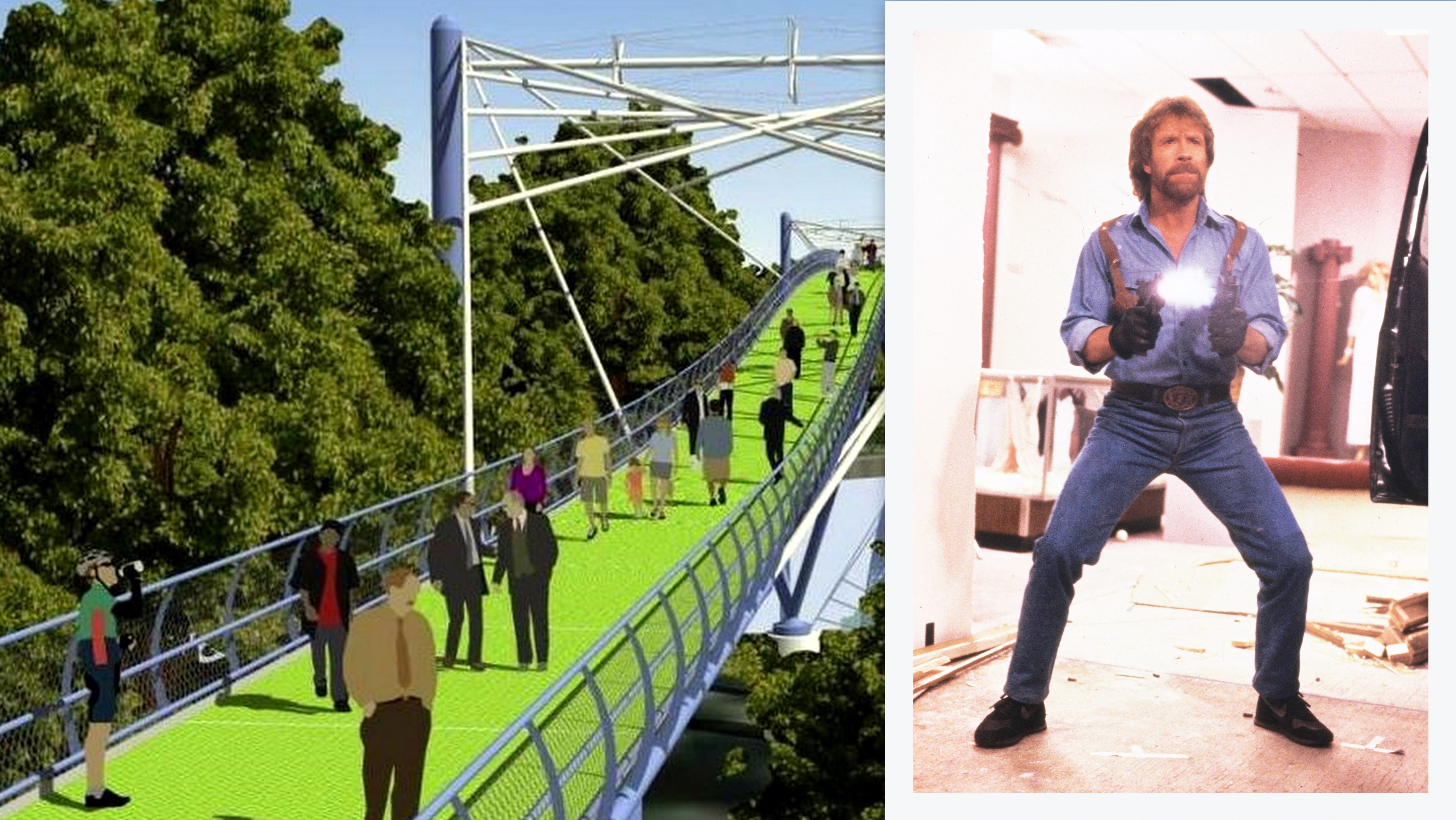 Poznáte Chucka Norrisa? To je ten, čo zomrel pred dvadsiatimi rokmi, len smrť doteraz nemala odvahu mu to povedať... Tento legendárny americký hrdina je pojmom aj u nás na Slovensku. A teoreticky by sa u nás mohol stať totálne nesmrteľný. Ak by sa totiž brali do úvahy výsledky ankety Bratislavského samosprávneho kraja, nový cyklomost z Devínskej Novej Vsi do rakúskeho Schlosshofu by sa volal Most Chucka Norrisa.