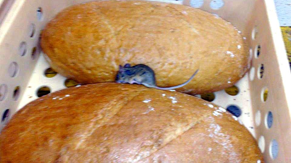 Poriadny šok zažila mladá mamička pri nákupe v jednom hypermarkete v Šali. V prepravke, v ktorej bol uložený chlieb, sedela živá myš. Žena si duchaprítomne hlodavca vyfotila.