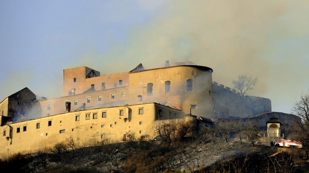 Strecha najkrajšieho stredovekého hradu zo 14. storočia ľahla popolom v deň parlamentných volieb v sobotu 10. marca. V priebehu jedného týždňa SNM vysťahovalo z hradu všetky zbierkové predmety a provizórne zakrylo otvorené časti hradu.
