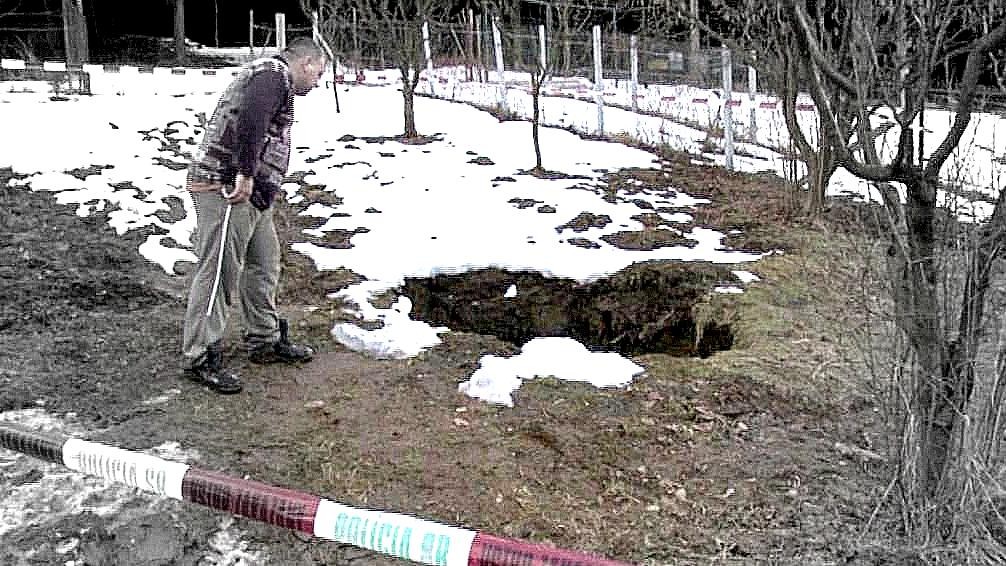 Nešlo však o žiadnu krádež. Strom sa prepadol o dva metre a vzápätí sa stratil pod zemou. Na záhrade zostal obrovský kráter, ktorý je široký približne 2,5 metra a hlboký minimálne 15 metrov. Diera ústi do chodby, z ktorej fúka studený vzduch. "Ide odtiaľ zima, strašná zima odtiaľ ide" dodala pani Miriam Sondrová.