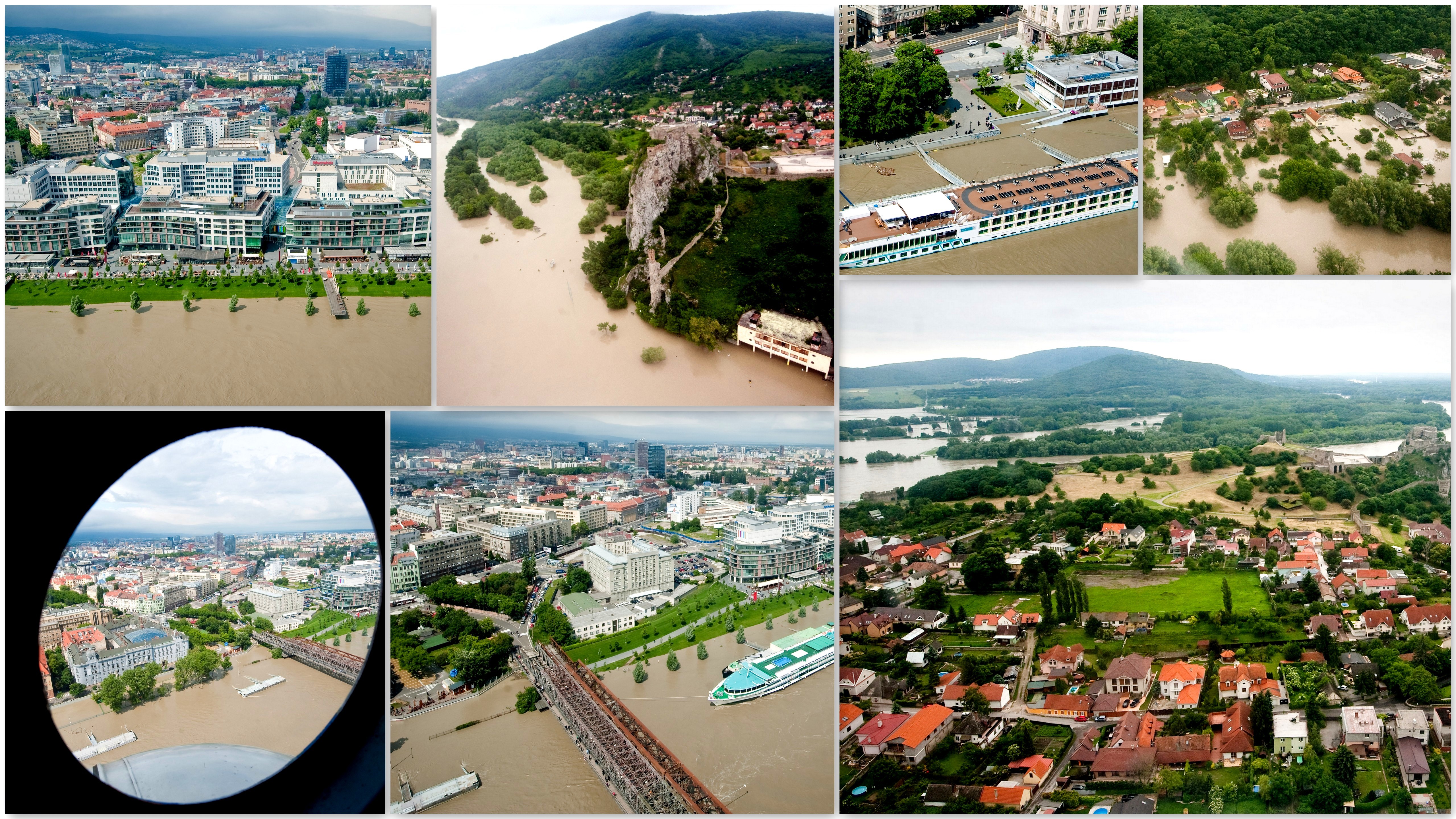 LETECKÉ ZÁBERY. Bratislava z vrtuľníka, samá voda
