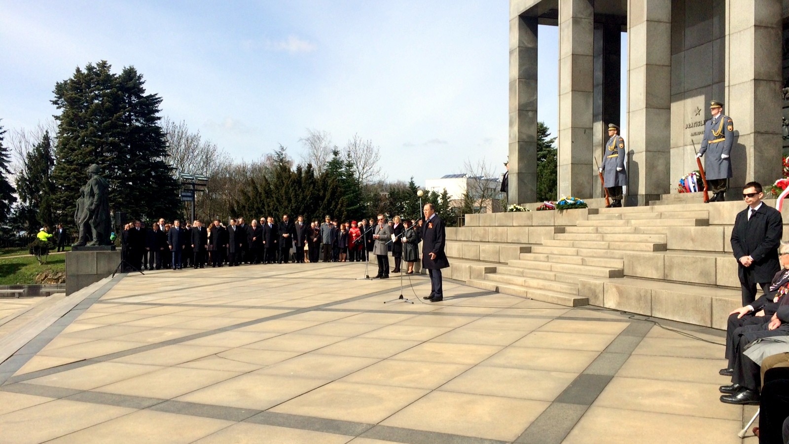 Lavrov po schôdzke s Kiskom pred novinárov nepredstúpil. Pred jednaním šéfa ruskej diplomacie so slovenským prezidentom sa pri prezidentskom paláci v centre Bratislavy zhromaždila hŕstka aktivistov, medzi nimi aj opozičný poslanec Peter Osuský, ktorí držali v rukách ukrajinské vlajky.