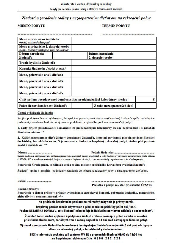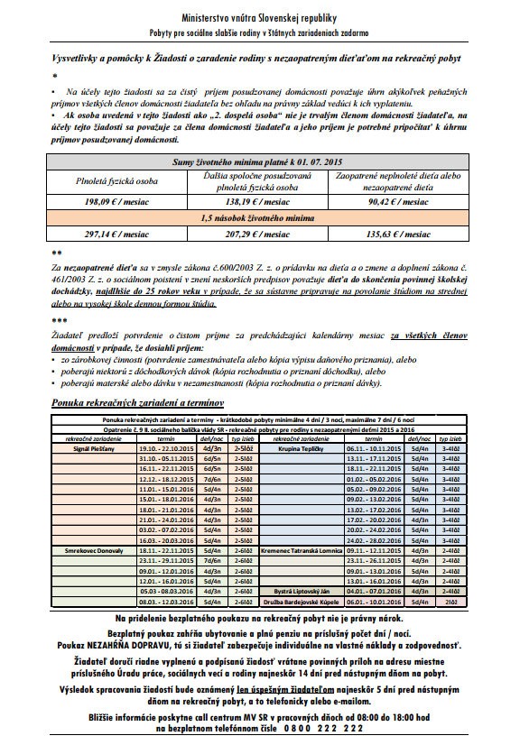 Na internetovej stránke ministerstva vnútra www.minv.sk a telefónnom čísle 0800 222 222 záujemcom presne povedia, ako sa na pobyt či už s rodinou, alebo so školou možno prihlásiť.