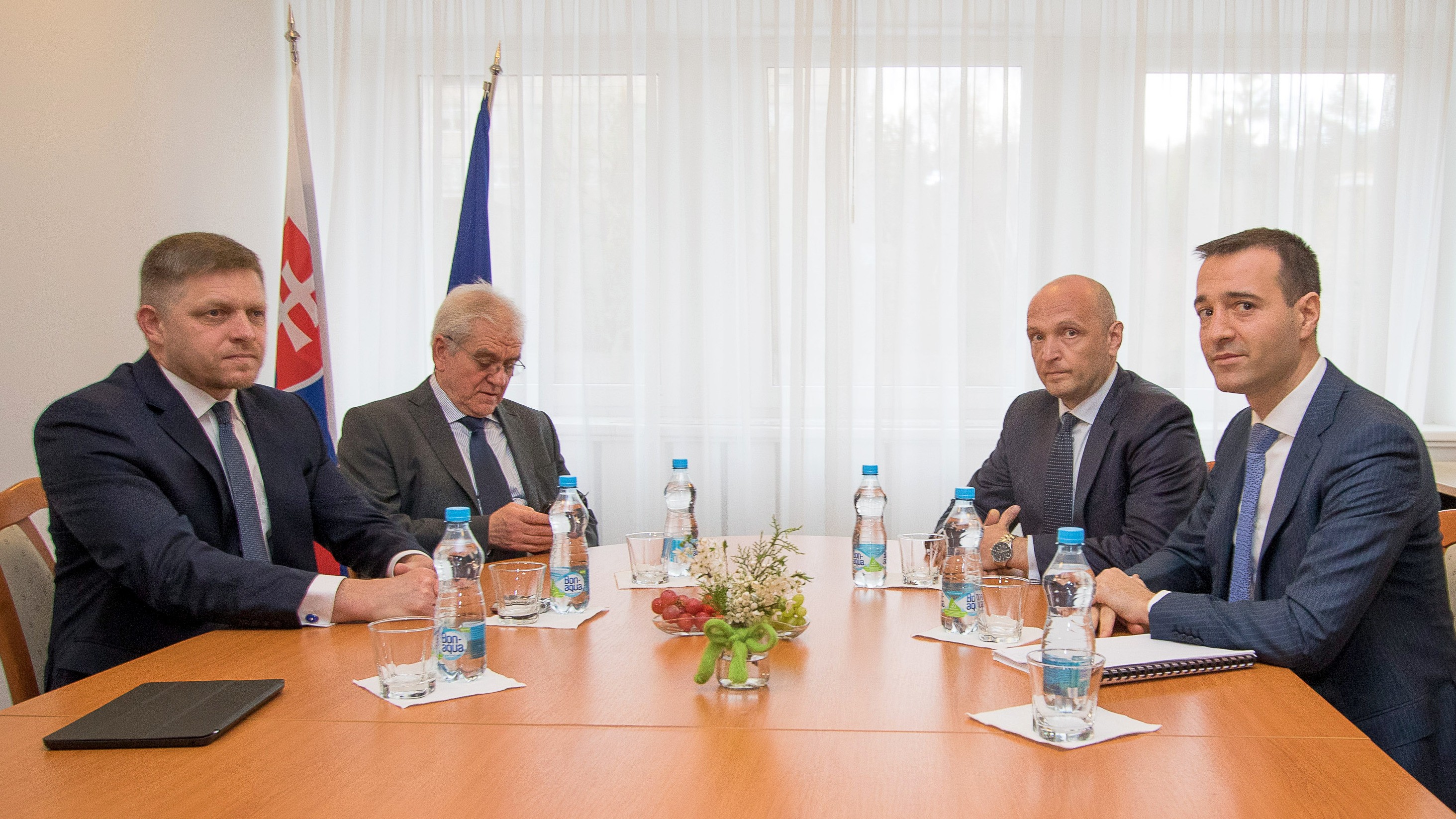 Tomáš Drucker a Robert Fico pri provom rokovaní na rezorte: