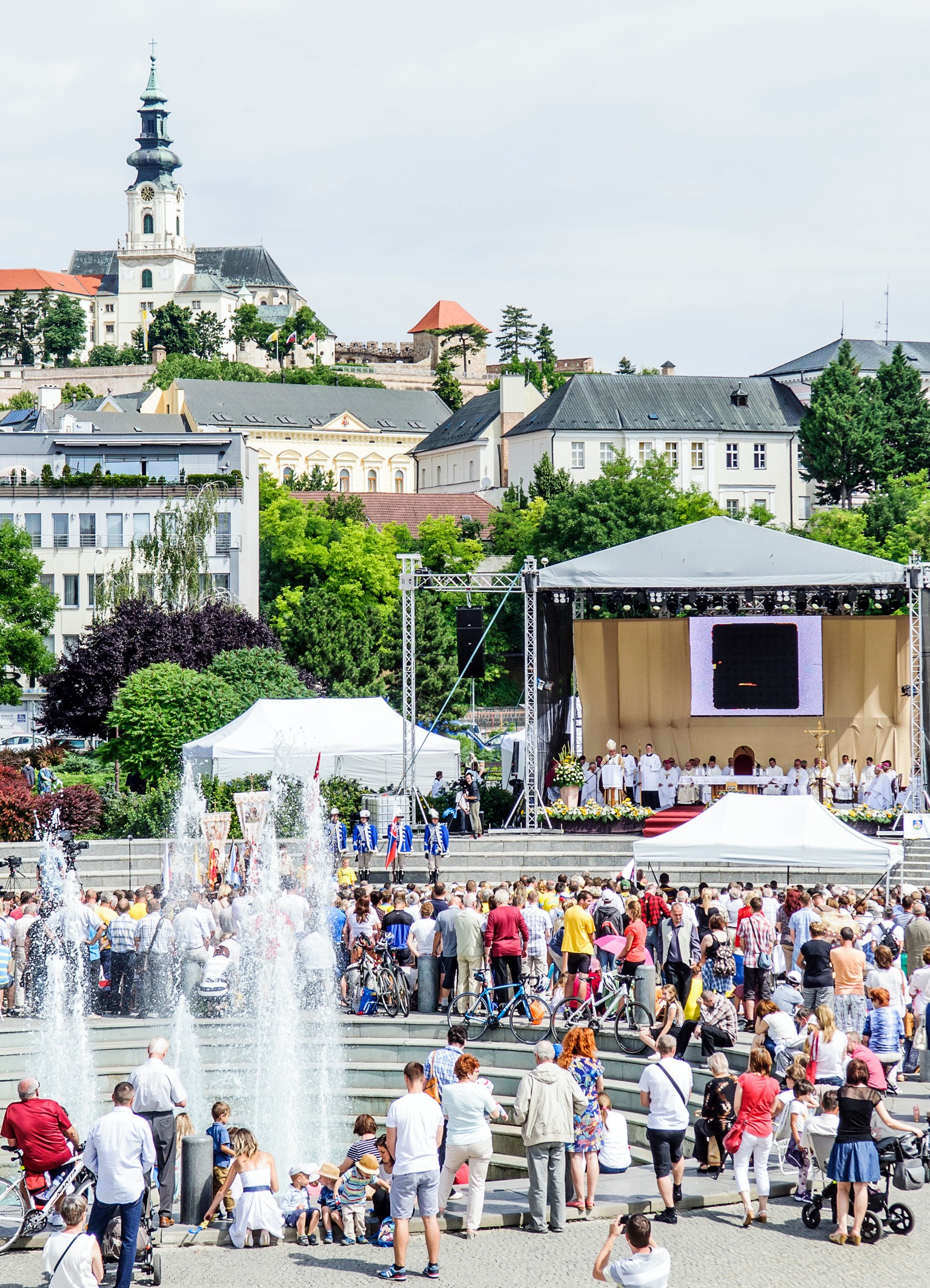 NITRA – Stovky veriacich z celého Slovenska sa v utorok zišli na Cyrilo-metodskej národnej púti na Svätoplukovom námestí v Nitre. Svätú omšu za účasti vrcholných predstaviteľov verejného, politického, cirkevného a akademického života celebroval rožňavský biskup Stanislav Stolárik.