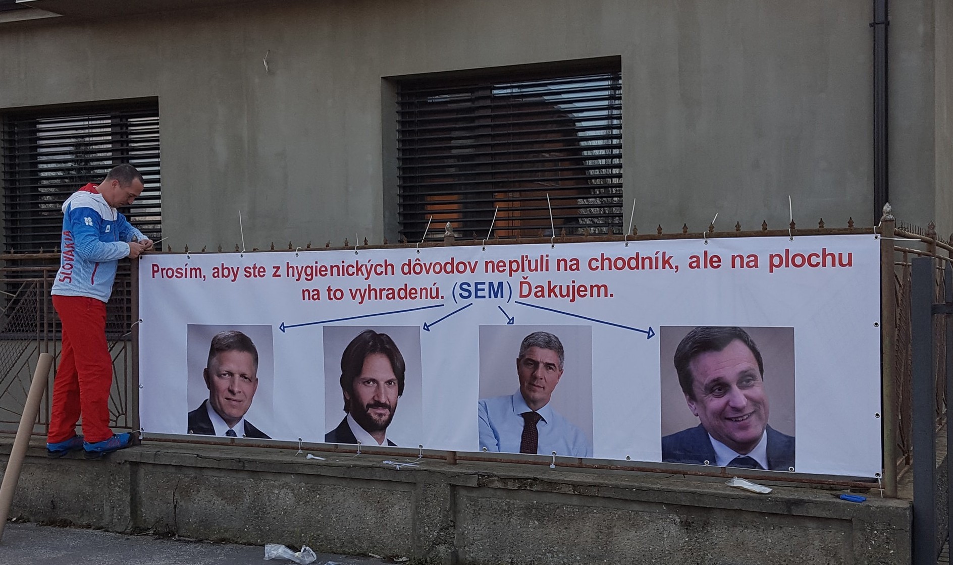 FOTO: Na plot si zavesil predstaviteľov vlády. Pútač zdieľajú tisícky ľudí