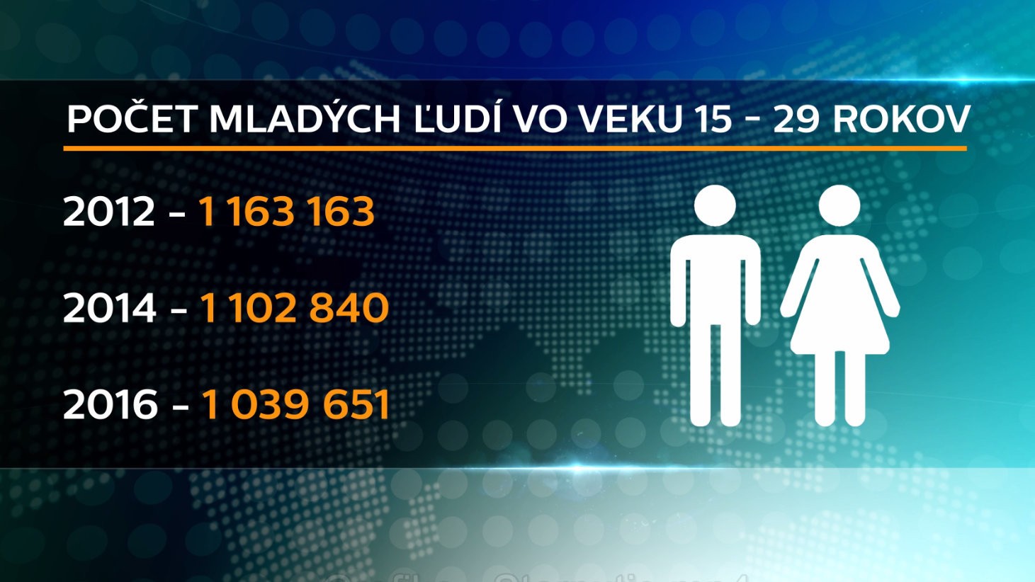 Podľa najnovšej štúdie v roku 2012 bolo na Slovensku 160 tisíc mladých ľudí vo veku od 15 do 29 rokov. V roku 2016, z ktorého sú najčerstvejšie údaje, to bolo už len necelých milión 40-tisíc.