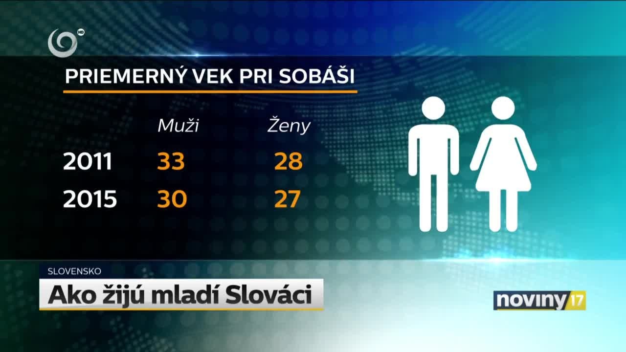 Slováci a Slovenky sa dnes sobášia a privádzajú na svet prvé dieťa trošku skôr ako kedysi. Kým v roku 2011 sa Slovenky prvýkrát vydávali vo veku asi 28 rokov, dnes je to 27. U mužov sa to posunulo podobne. Približne o rok sa znížil aj priemerný vek prvorodičiek. "Kreuje sa skupina mladých ľudí, ktorá nazvime ich, je trošku konzervatívnejšia a odmieta odsúvanie rodičovstva a manželstva do veku po 30tke," dodáva sociologička. Celkom dobre sme na tom aj z pohľadu životného štýlu. Stále síce dosť veľa ľudí vo veku 15 - 29 rokov fajčí, ale relatívne málo pravidelne holduje alkoholu a v obezite v tejto vekovej kategórii sme na chvoste európskeho rebríčka.