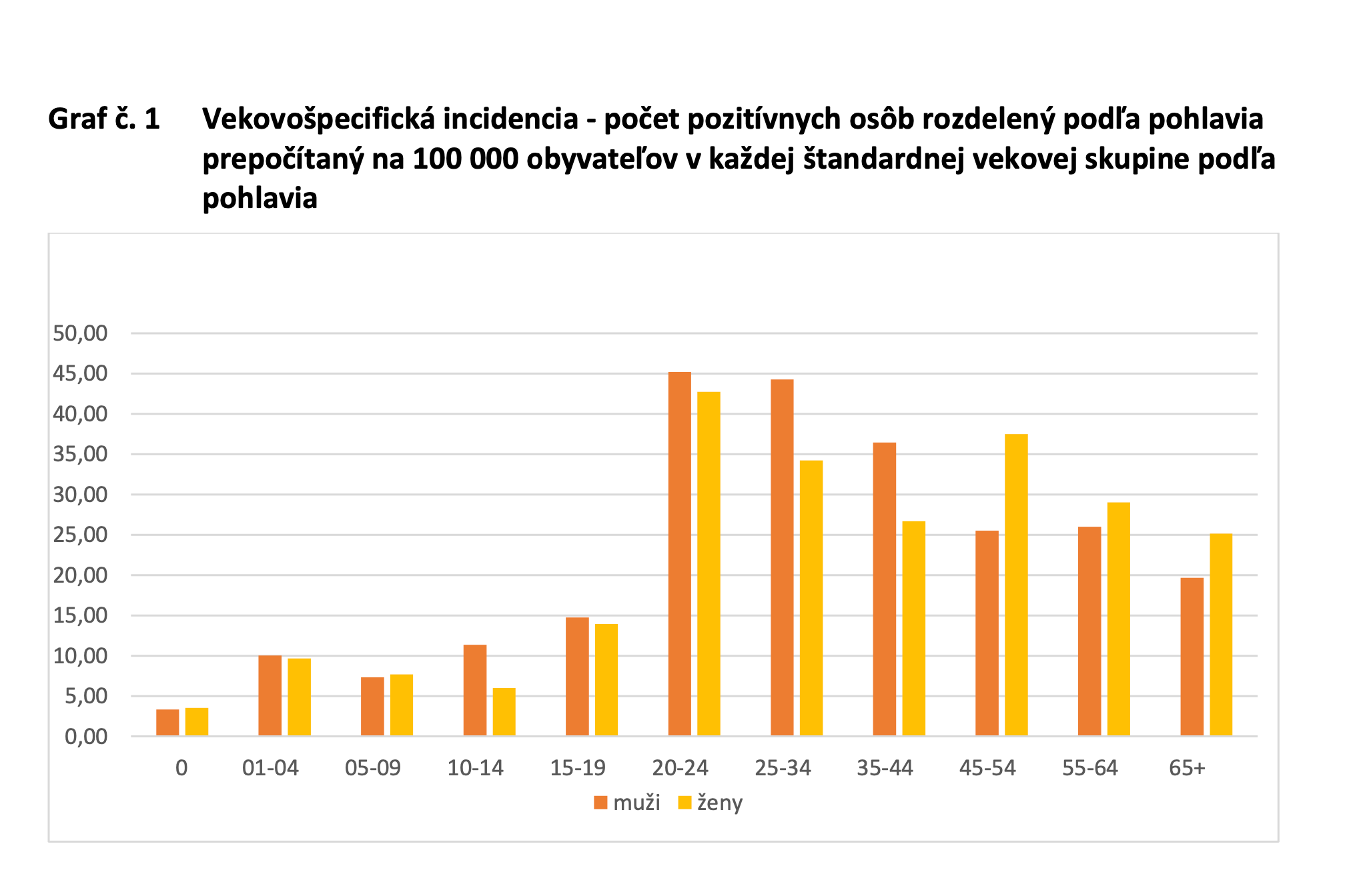 Z grafu zverejneného Úradom verejného zdravotníctva vyplýva, že najviac infikovaných pacientov na koronavírus bol v skupine 20-24 ročných a 25-34 ročných. Rozdiel medzi počtom nakazených žien a mužov takmer nie je .