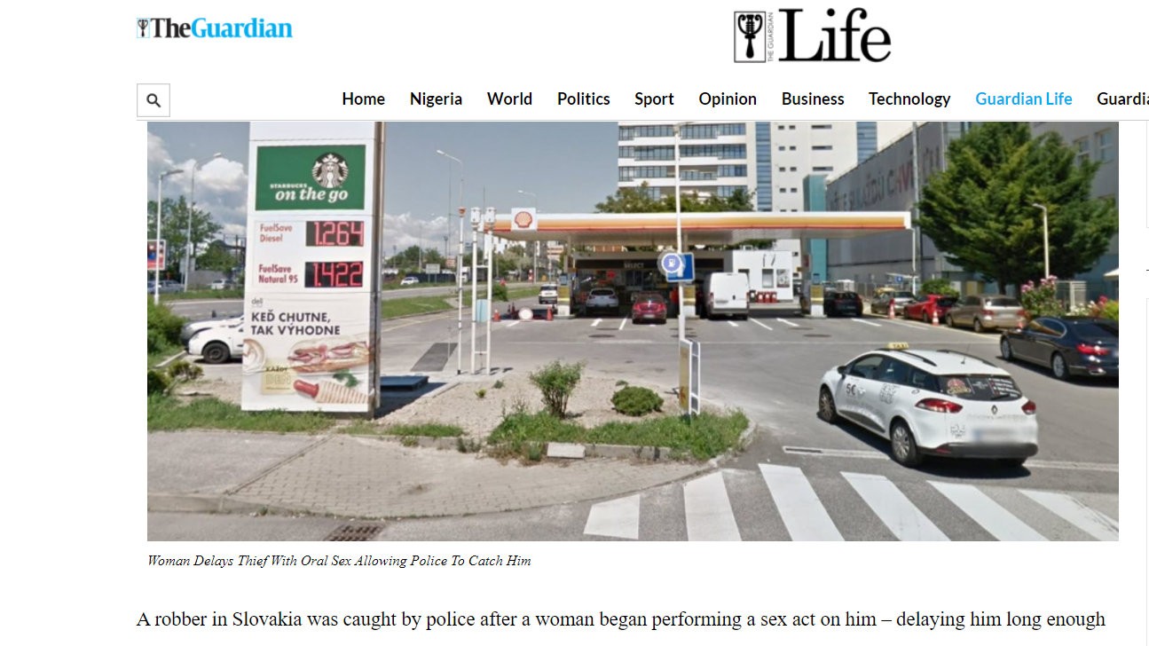 "Žena zdržala lupiča orálnym sexom, čím polícii umožnila jeho dolapenie." Takýmto titulkom opisuje udalosť web guardian.ng.