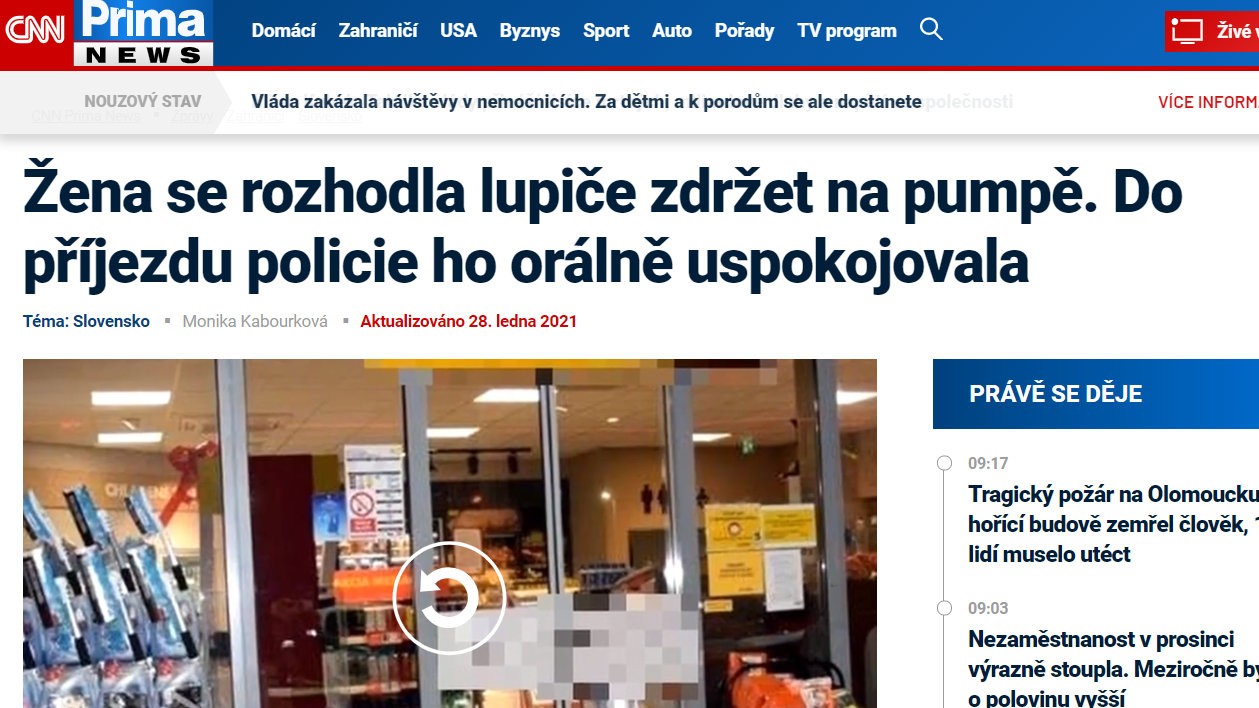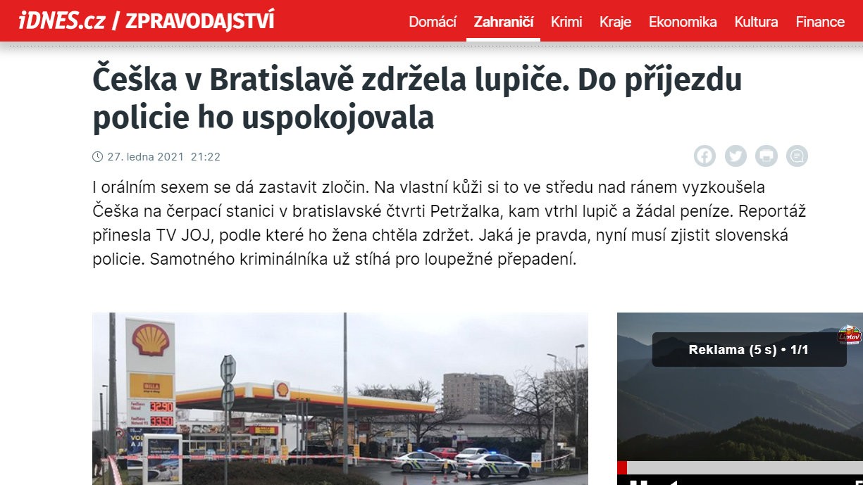 Kuriózny prípad, ktorý sa odohral pri lúpežnom prepadnutí jednej z benzínových púmp v Bratislave, sa už dostal aj na stránky zahraničných médií. "Hrdinkou" je žena, ktorá orálnym sexom zdržala lupiča až do príchodu policajtov.
