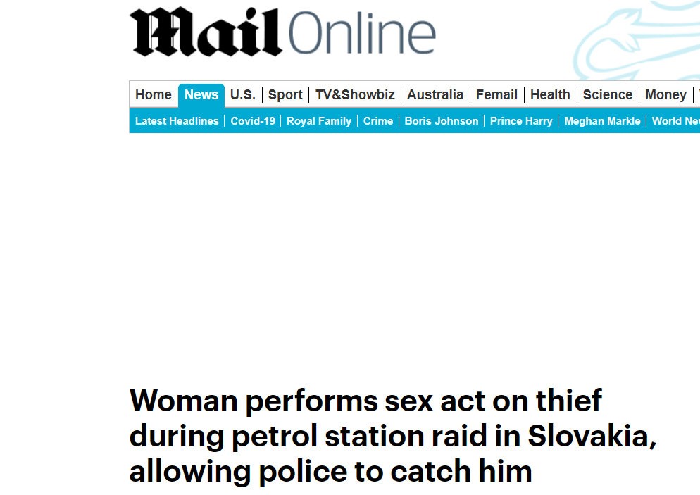 "Počas zásahu na čerpacej stanici na Slovensku vykonala žena sexuálny akt so zlodejom, čím pomohla polícii chytiť ho." Takto výstižne reagoval na šteklivý incident známy portál dailymail.co.uk.