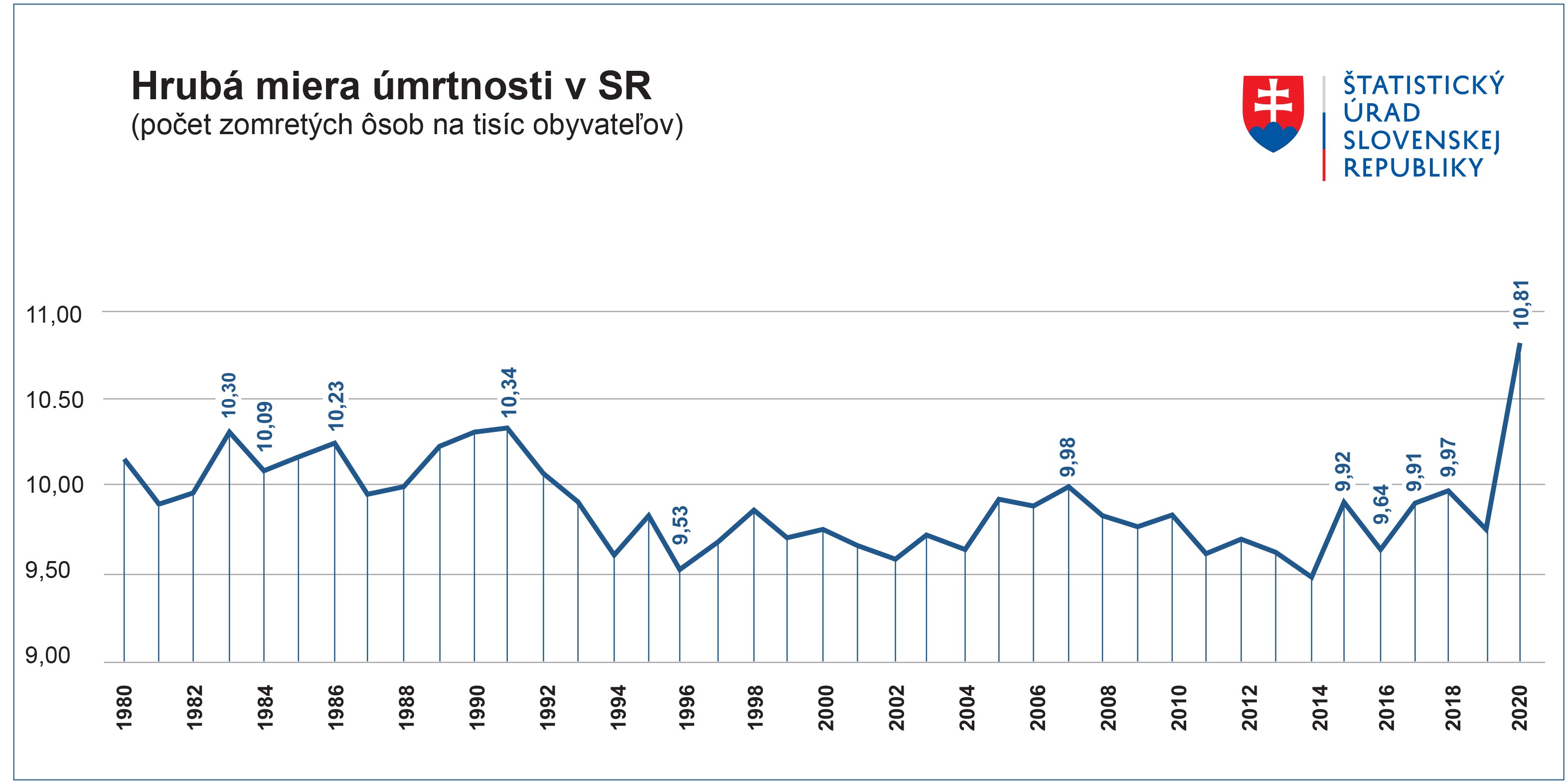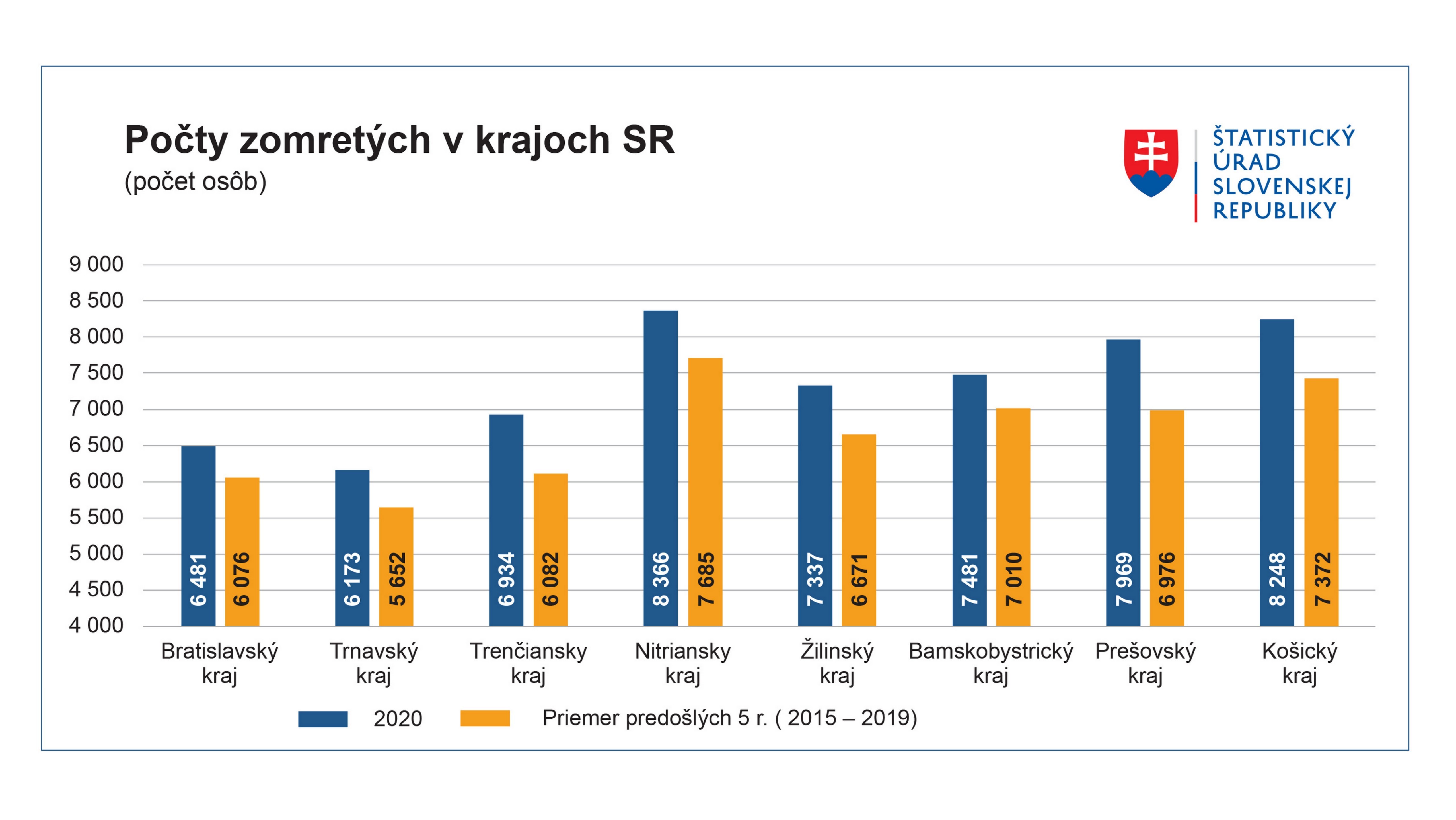 V roku 2020 zomrelo na Slovensku 59 000 ľudí, je to takmer o 5,5 tisíca osôb ako zomieralo v priemere za posledných päť rokov. Počet úmrtí tak vzrástol o 10,2 %.