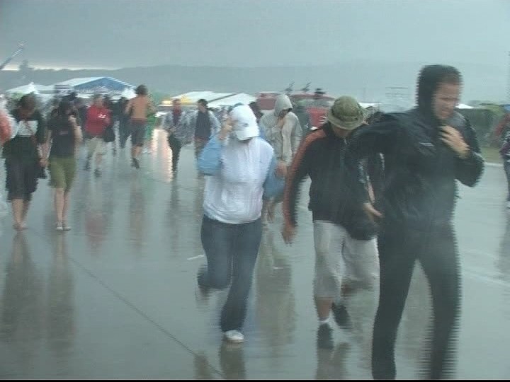 Situácia sa komplikuje už v celom Trenčíne, na železničnú stanicu prúdia tisíce ľudí ( festivalu sa zúčastnilo približne 30 tisíc návštevníkov ). Veľa z nich je premoknutých, uzimených a za sebou vlečie stany.