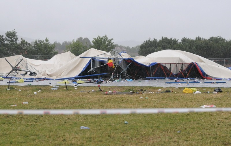 Tento týždeň je to už druhý prípad, kedy sa na koncerte zrútilo pódium. Vo štvrtok sa pre nehodu, pri ktorej zomreli dvaja ľudia, zrušil Madonnin koncert.