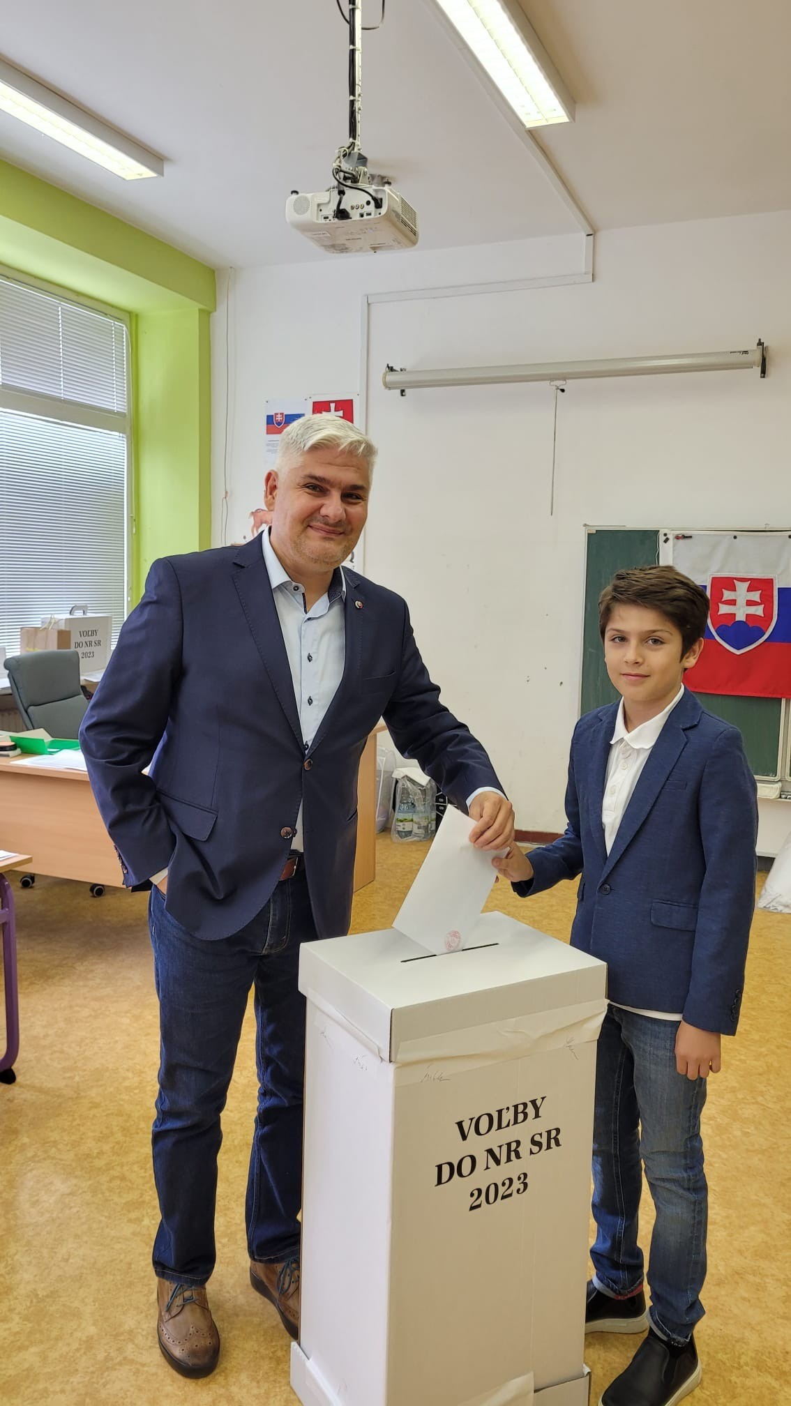 Známy moderátor Sajfa sa k volebnej urne postavil so synom Šimonkom.