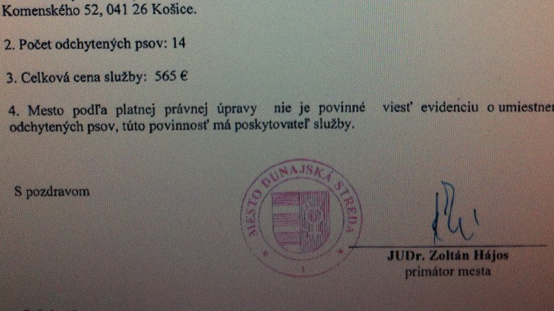 V Dunajskej Strede mal za lapenie štrnástich psov dokopy dostať až 565 eur. Magistrát sa podľa zmluvy nezaväzoval viesť evidenciu miesta, kde pracovník zvieratá umiestni! Nikto tak ani nekontroloval, aký bol ich osud a kde napokon skončili.