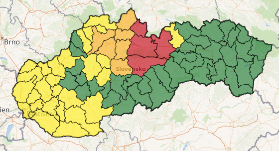 SHMÚ upozorňuje na vietor v celom Bratislavskom a Trnavskom kraji, v takmer celom Nitrianskom kraji a v okresoch Brezno, Myjava, Nové Mesto nad Váhom, Trenčín, Kežmarok, Poprad a Tvrdošín. Na týchto miestach platí výstraha prvého stupňa. V okrese Gelnica vydali hydrológovia výstrahu prvého stupňa pred povodňami.