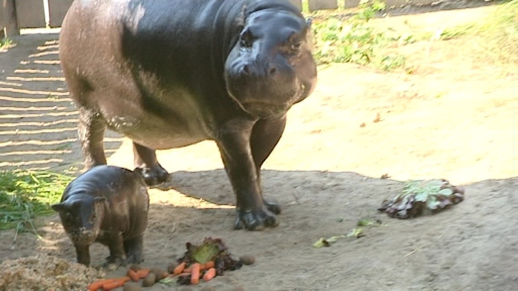 Mláďa hrošíka nevie plávať vo vode a preto ho to 28-ročná mamina Dina musí najskôr naučiť. Jeho plavecký kurz trvá štyri až šesť týždňov. Mama malého nezbedníka sa pred návštevníkmi najskôr poriadne posilnila a popri tom stihla dať pozor aj na to, aby vzácnemu synčekovi neublížila. Zatiaľ si l4-ročný otec Paul doprial pár dĺžok v bazéne.