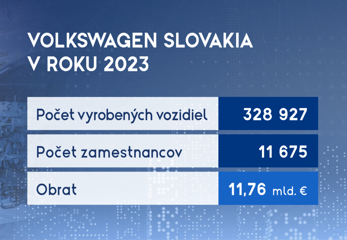 Slováci môžu byť na seba hrdí. Aj v roku 2023 dosiahli pomyselnú automobilovú métu. "Očakávame okolo milión 130-tisíc vozidiel a myslím, že to bude historicky naj rok," priblížil Alexander Matušek, prezident ZAP. Mal aj najväčší slovenský súkromný zamestnávateľ. Aspoň, čo sa týka obratu. Ten bol v hodnote skoro 12 miliárd eur. Stúpol aj počet vyrobených áut. "Vyrobili sme spolu 328 927 oproti roku 2022, keď ich bolo 268 685, čo je výrazný nárast vyrobených áut," uviedol Wolfram Kirchert, šéf VW Slovakia.