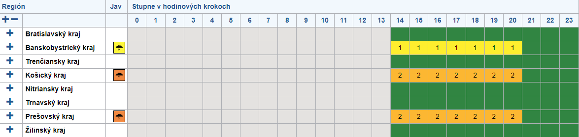 SHMÚ vydalo pred supercelou výstrahy 1. a 2. stupňa na tomto území Slovenska: