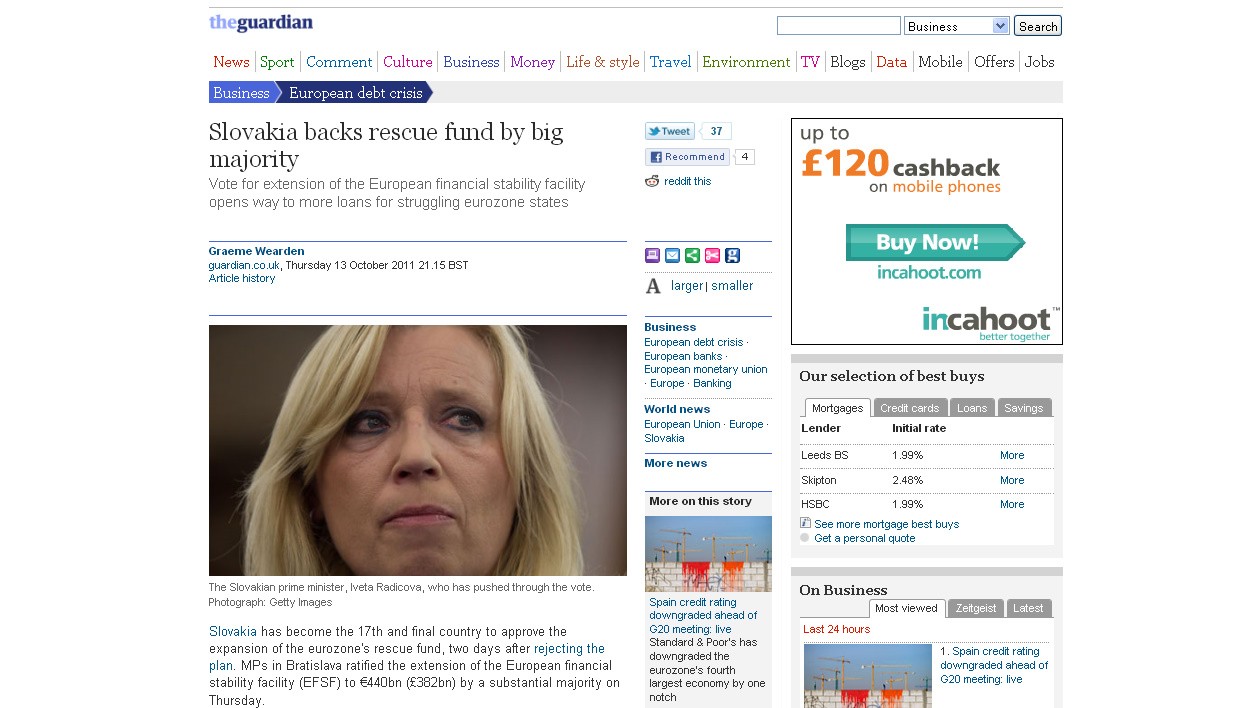 The Guardian v správe o slovenskom hlasovaní citoval expremiéra Roberta Fica, podľa ktorého je Slovensko vďaka schváleniu eurovalu späť na mape Európy.