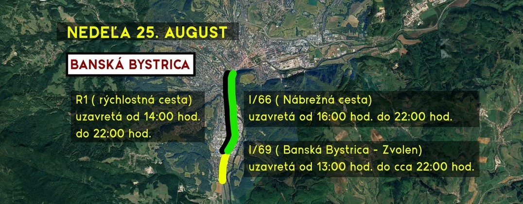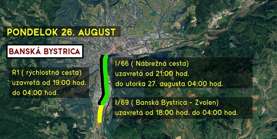 Nácvik začína v nedeľu 25 augusta, počas prepravy techniky od 13.00 h uzavrú postupne takzvanú starú cestu zo Sliača na Bystricu, ale aj R1. "Vodiči pôjdu v ľavom pruhu pri obojsmernej prevádzke," povedal zástupca riaditeľa KDI BB Vladimír Farkaš. Hlavná cesta cez centrum Banskej Bystrice bude uzavretá v pondelok 26. augusta od 21.00 h do 04.00 h rána nasledujúceho dňa až po výjazd Partizánska, avizuje Farkaš.