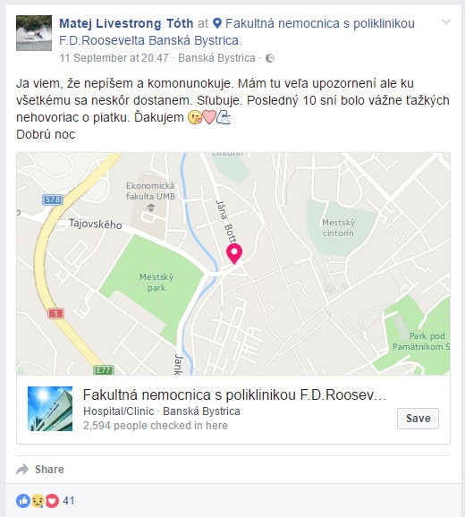 Posledný Matejov status na facebooku.