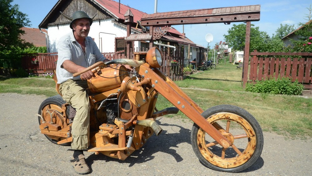 Geniálne! Takúto originálnu motorku ste ešte určite nevideli. Maďarskému traktoristovi Ištvánovi trvalo dva roky, kým ju zostrojil a zmontoval dokopy. Je totiž takmer celá z agátového dreva! Motor má pritom z poľského Fiatu a skutočne funguje!