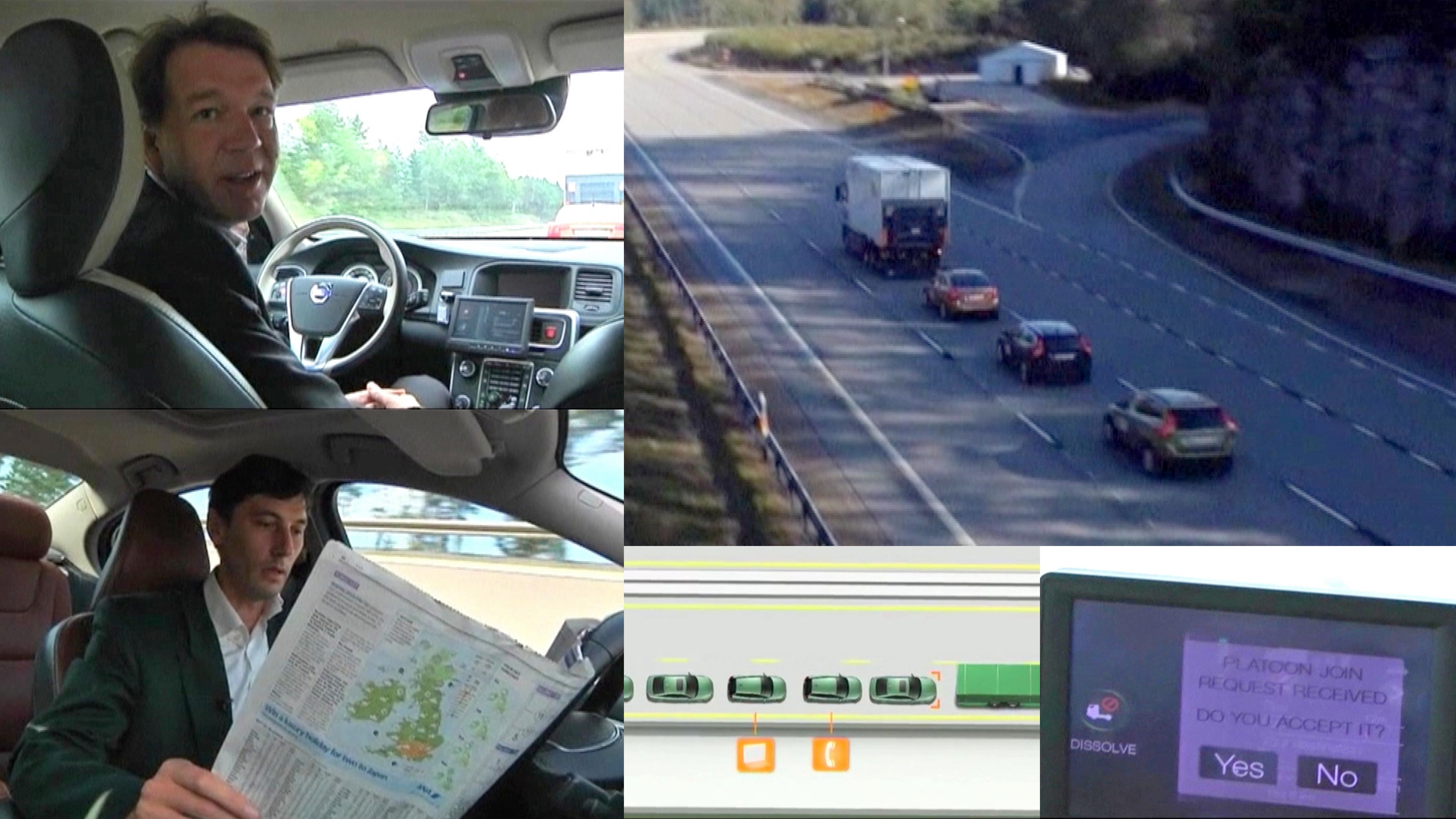 Chcete si radšej cestou do práce prečítať dennú tlač, ako sa sústrediť na šoférovanie? Alebo sa chcete naraňajkovať a to bez rizika havárie? Onedlho to vraj bude možné. V budúcnosti by mali jazdiť autá v kolóne, ktorú vedie profesionálny vodič. Všetky ďalšie autá sa bezdrôtovou technológiou pripoja na centrálny počítač a potom napodobňujú prvé vozidlo. Rovnako zrýchľujú, brzdia či menia smer. "O tomto je technológia. Vrátime vám váš čas, môžete za jazdy relaxovať a nemusíte sa starať o šoférovanie," tvrdí Stefan Solyom, spolutvorca systému.