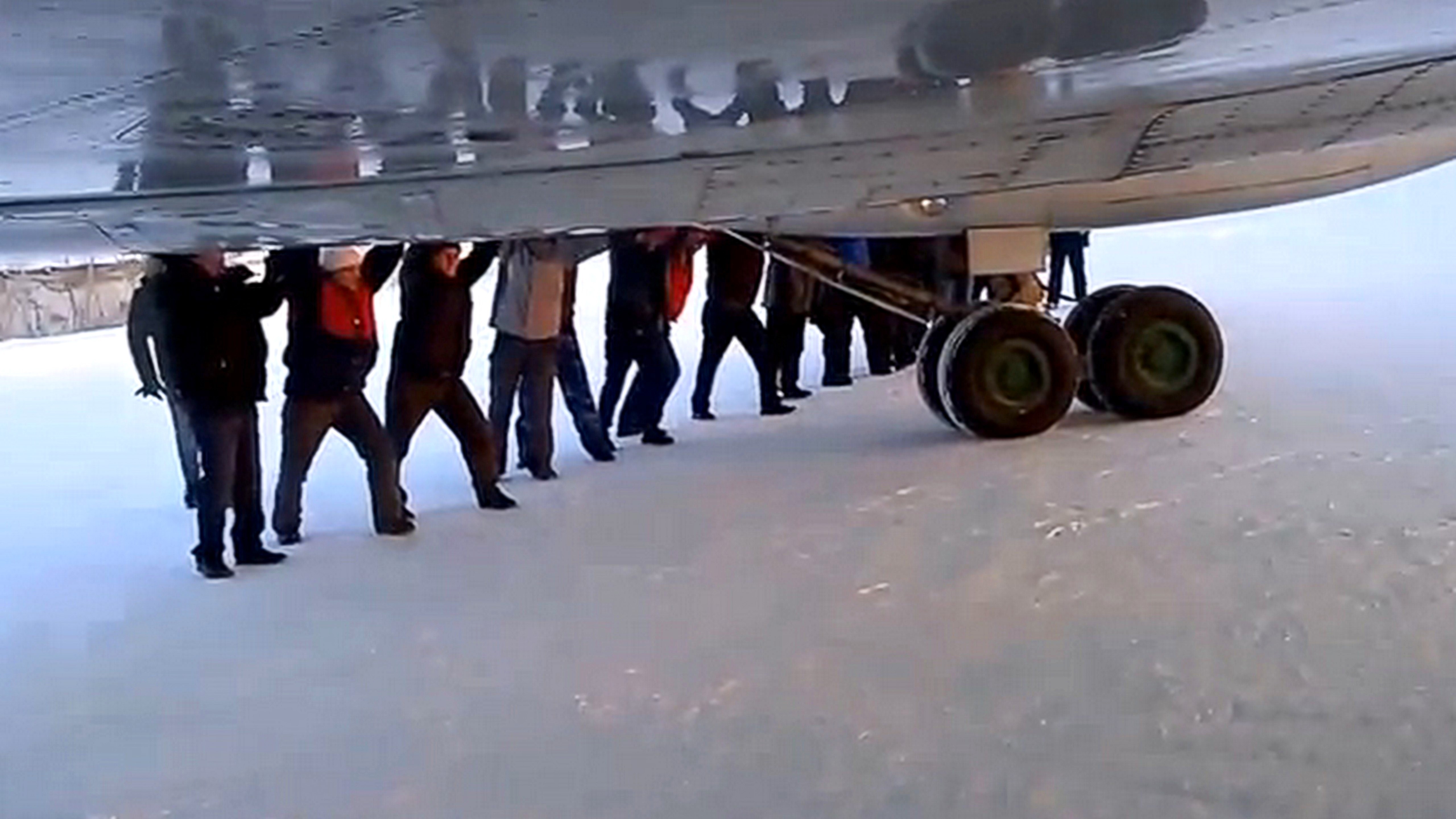 Pozrite sa, ako pasažieri tlačili zamrznuté lietadlo: